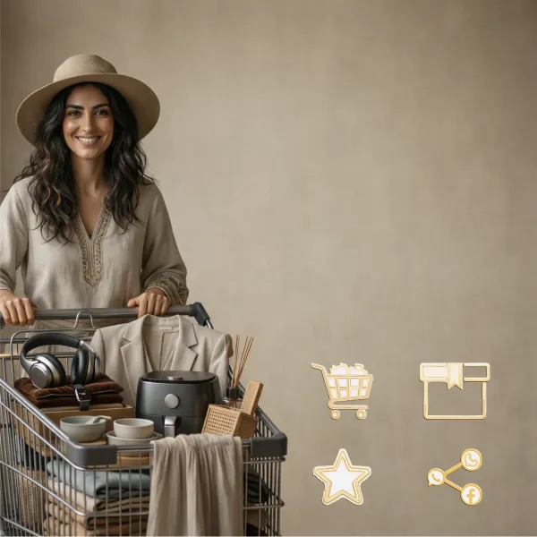 Select the type, specifications, and shipping destination to see if you can order. You can share the product using Facebook and WhatsApp icons or write a comment, receive discounts using the code number, and finally add it to your cart.