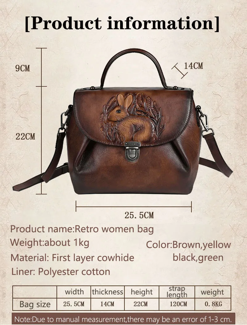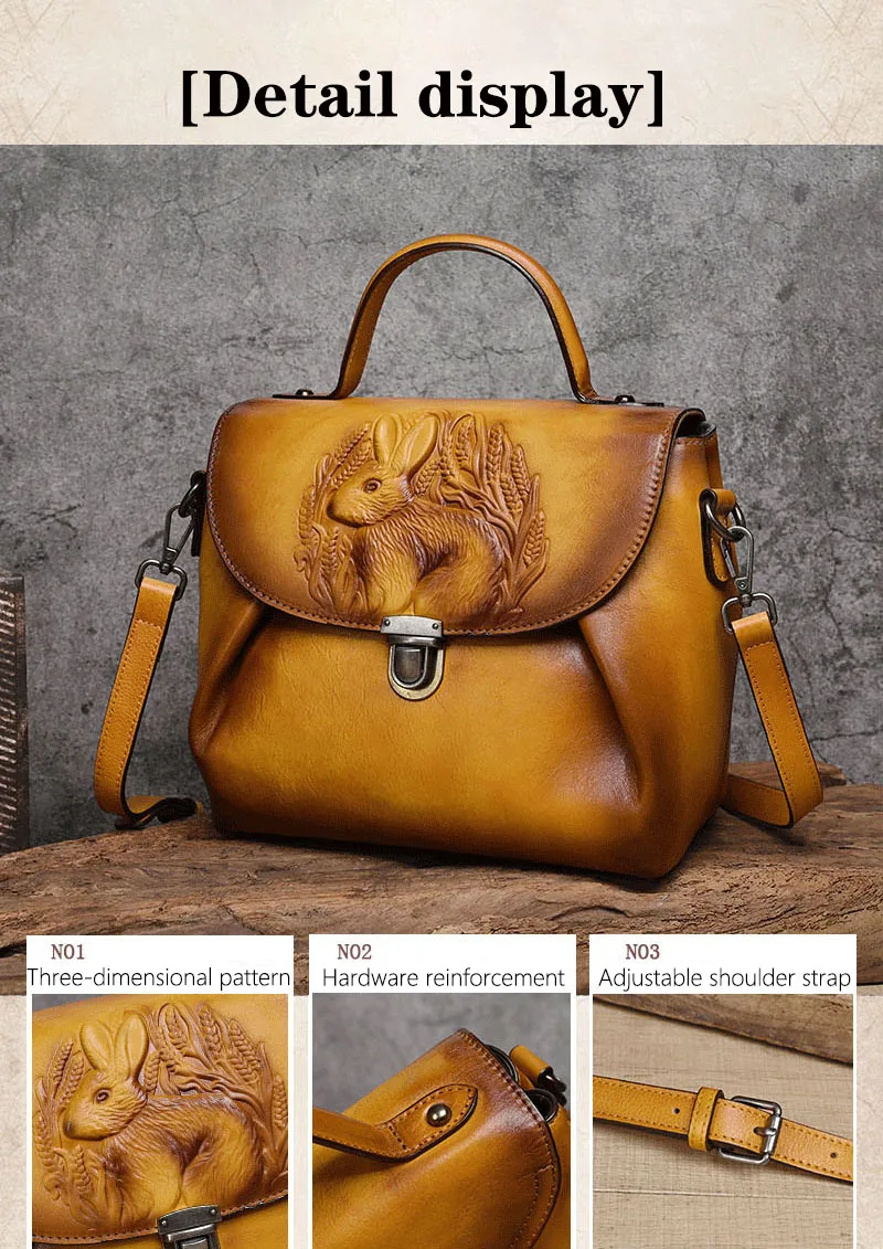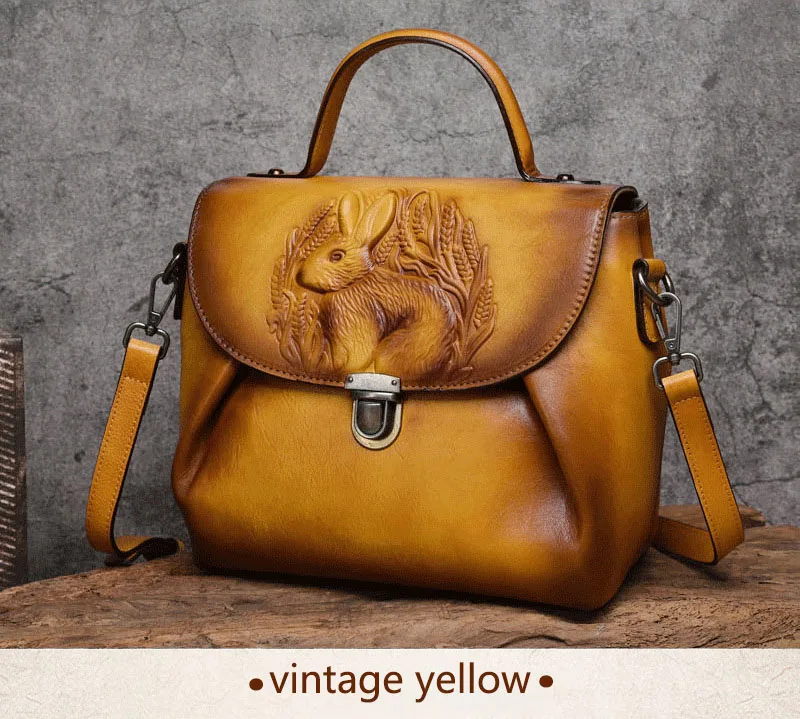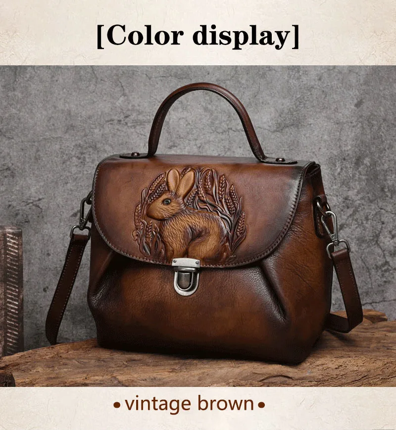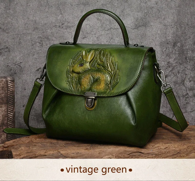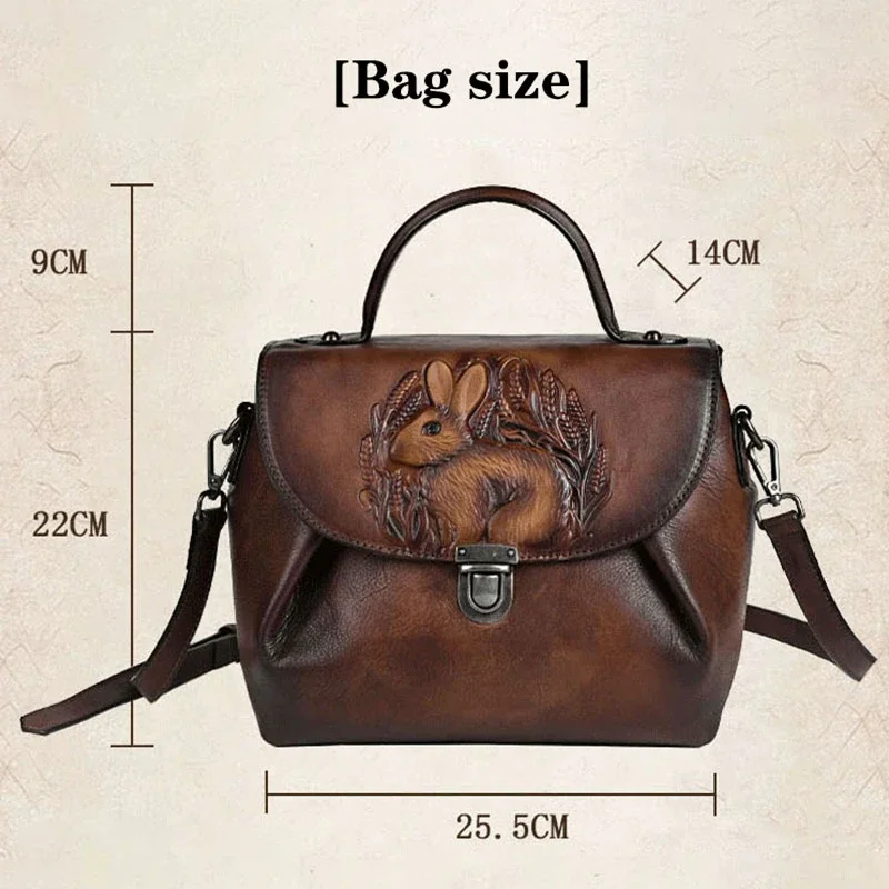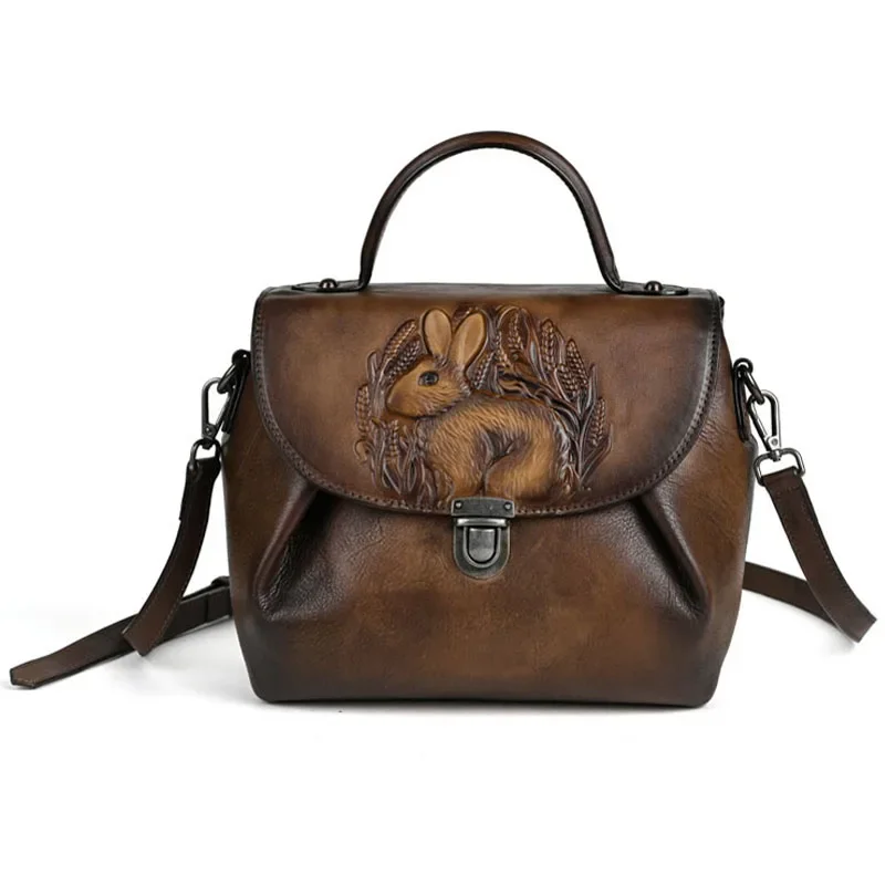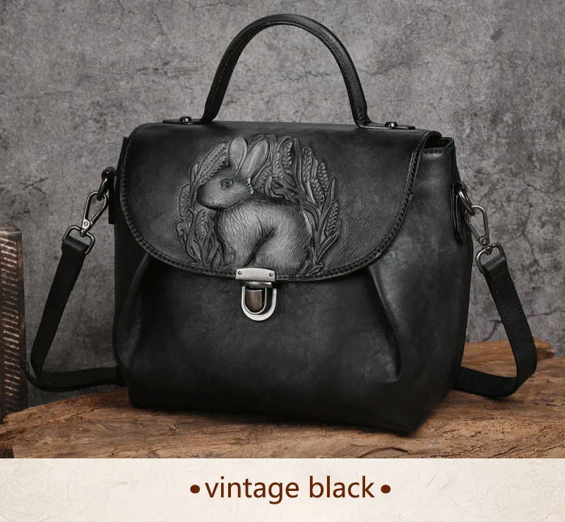 Women Vintage Handbags Bag Rabbit Embossed Handmade Luxury Designer Handbag Cowhide For Women Genuine Leather Shoulder bags
