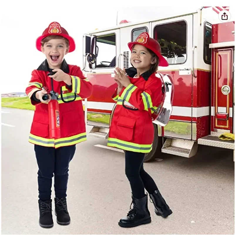 ●Includes ADJUSTABLE HELMET , MESS FREE working WATER EXTINGUISHER, axe ,whistle,personalized name tag ,and fireman knapsack