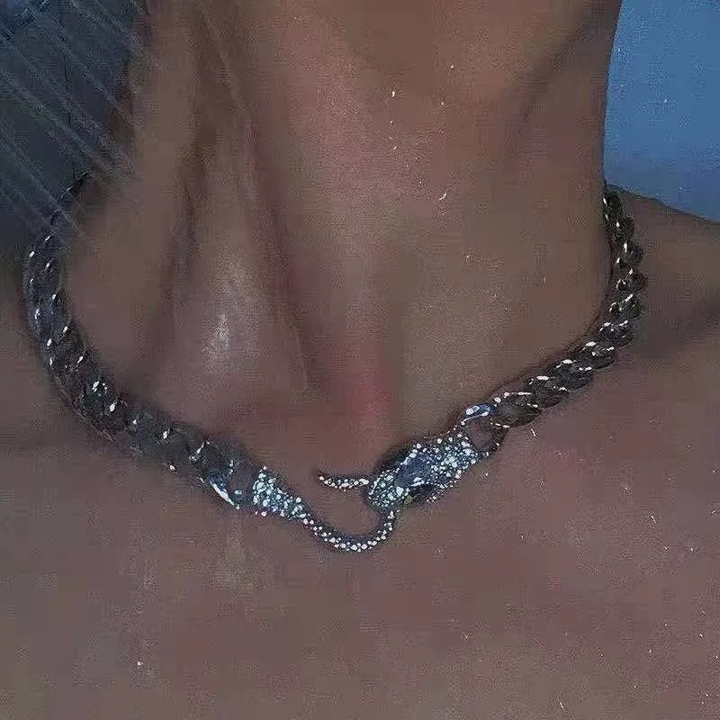 2025 Punk Hip Hop Rock Black Thick Snake Necklace for Women Vintage Exaggerated Crystal Clavicle Chain Necklace Party Jewelry