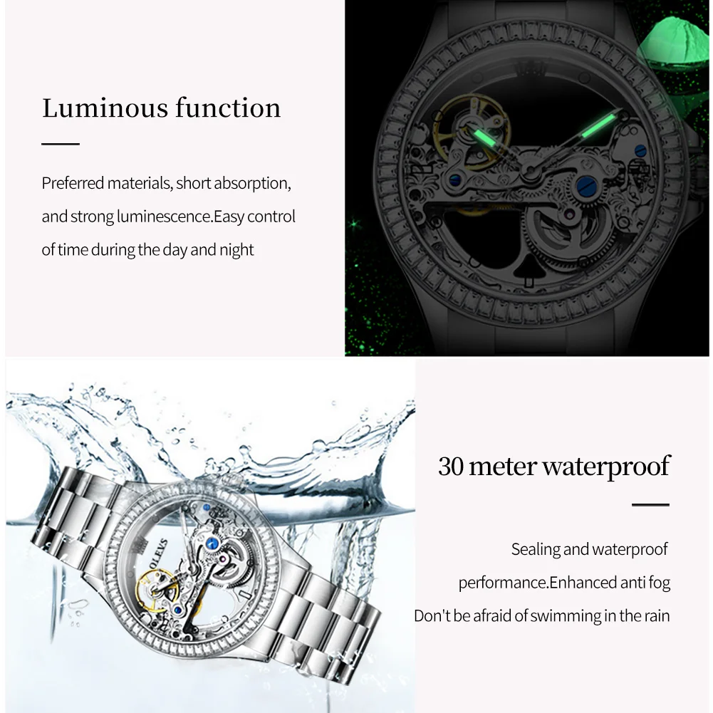 OLEVS 6699 Automatic Mechanical Women's Watch Transparent 40mm Big Dial Design Bracelet Watch Set Gift Luxury Watch for Women