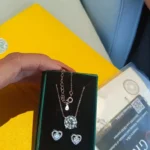 The product came with lab certificates and everything is detailed about the moissanite. The shine is perfect and high quality. The packaging is very high quality