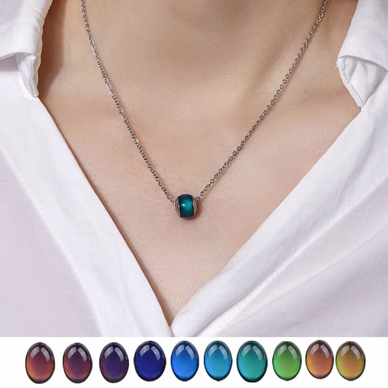 Water Drop Heart Thermochromic Bead Necklace Temperature Color-Changing Mood Bead Necklace For Women