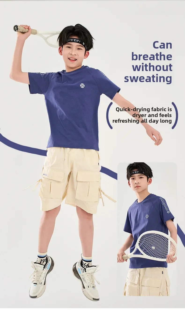 • Quick-drying Material : Crafted with quick-drying fabric, this t-shirt ensures comfort and dryness during physical activities, ideal for active kids.