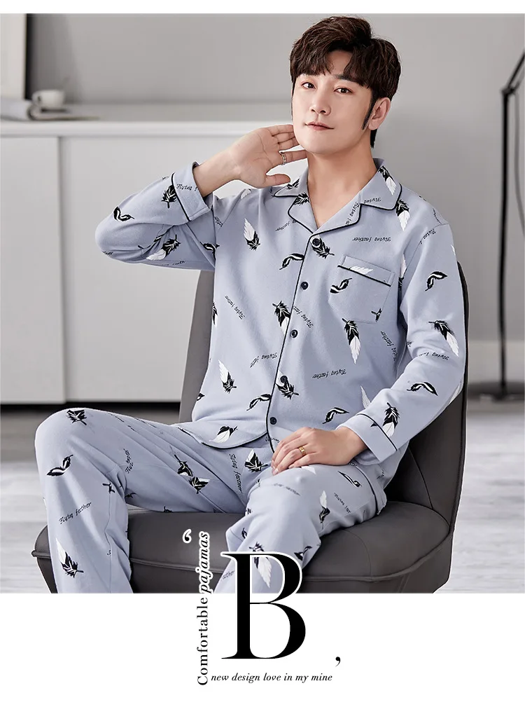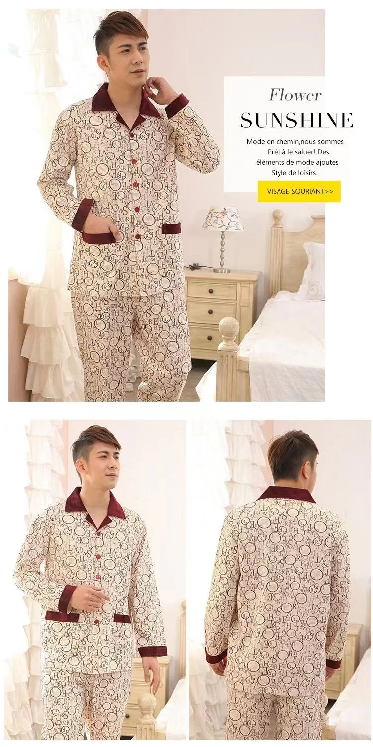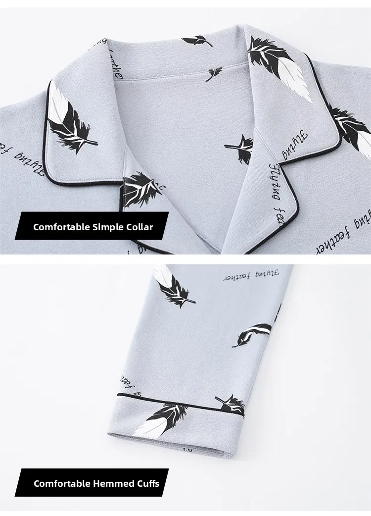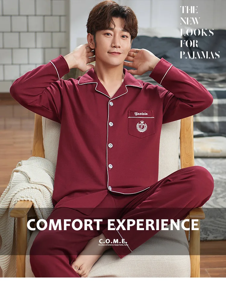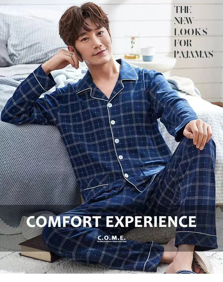 This home wear set includes a long-sleeve shirt and pants, perfect for lounging around the house in style.
