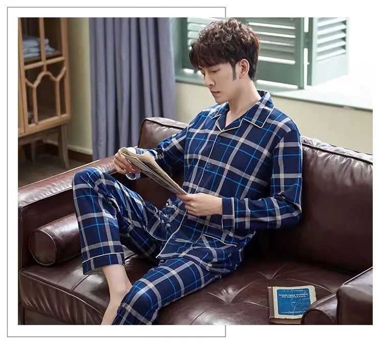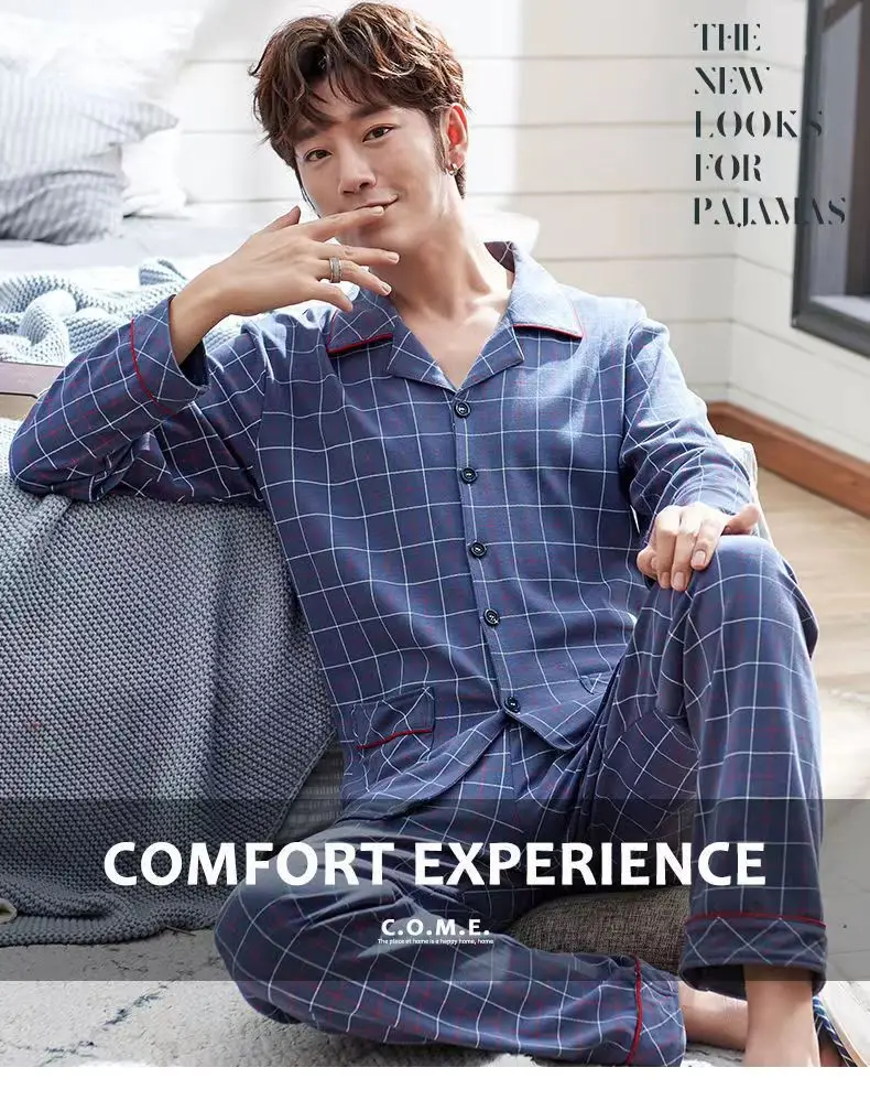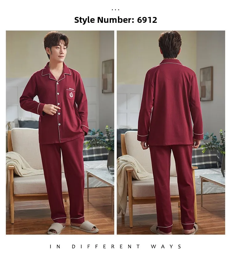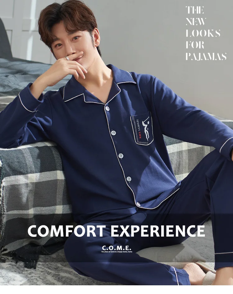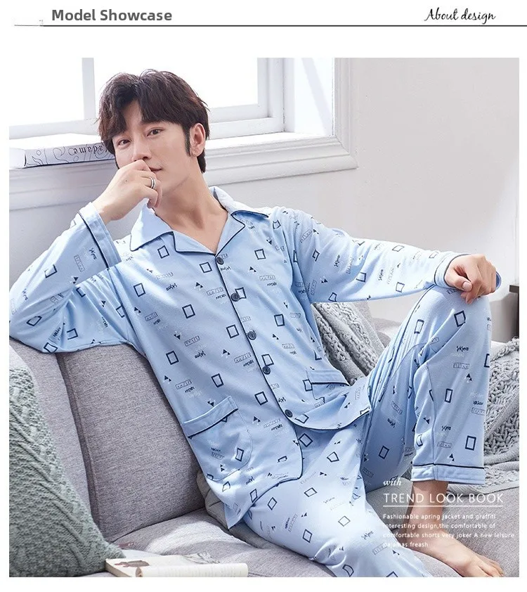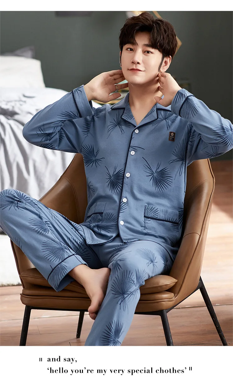 This home wear set includes a long-sleeve shirt and pants, perfect for lounging around the house in style.