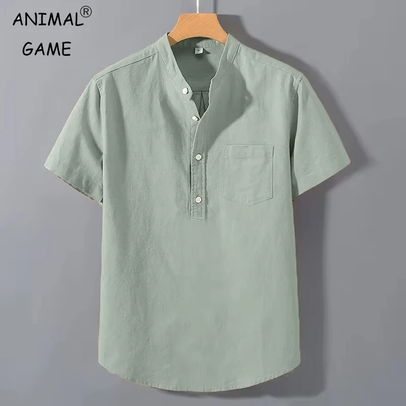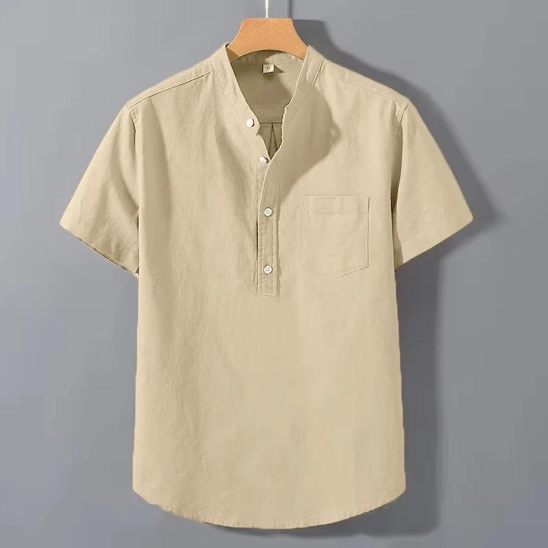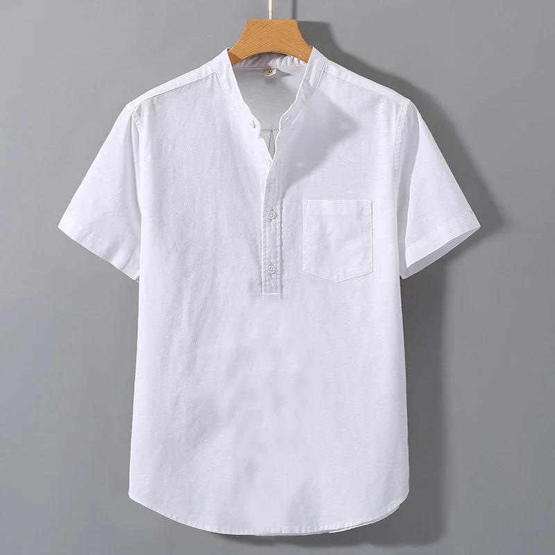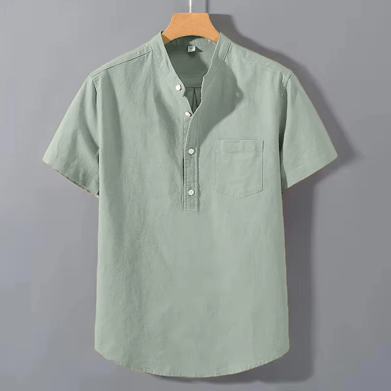 8 reviews for Summer Men’s Henry Cotton Short Sleeve Shirt Vintage Casual Beach T-shirt Breathable Streetwear Collar Shirt Tshirts with Pocket