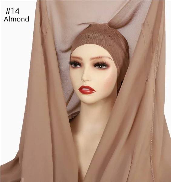 Very happy with the item. I wish they don’t sew the scarf to the under scarf.