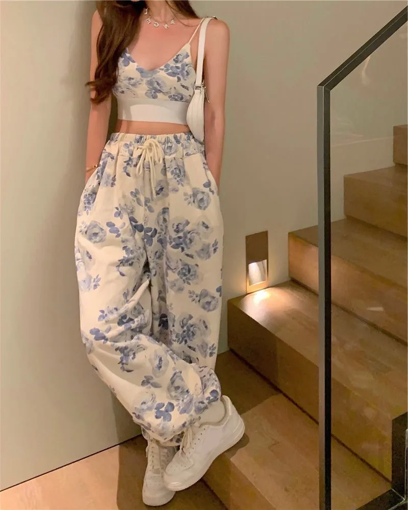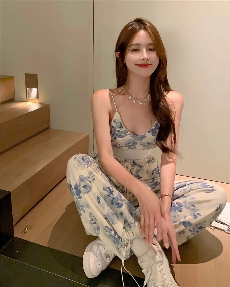 纯棉夏装2022新款吊带背心束脚裤印花性感辣妹气质两件套装女现货