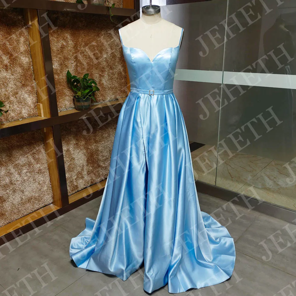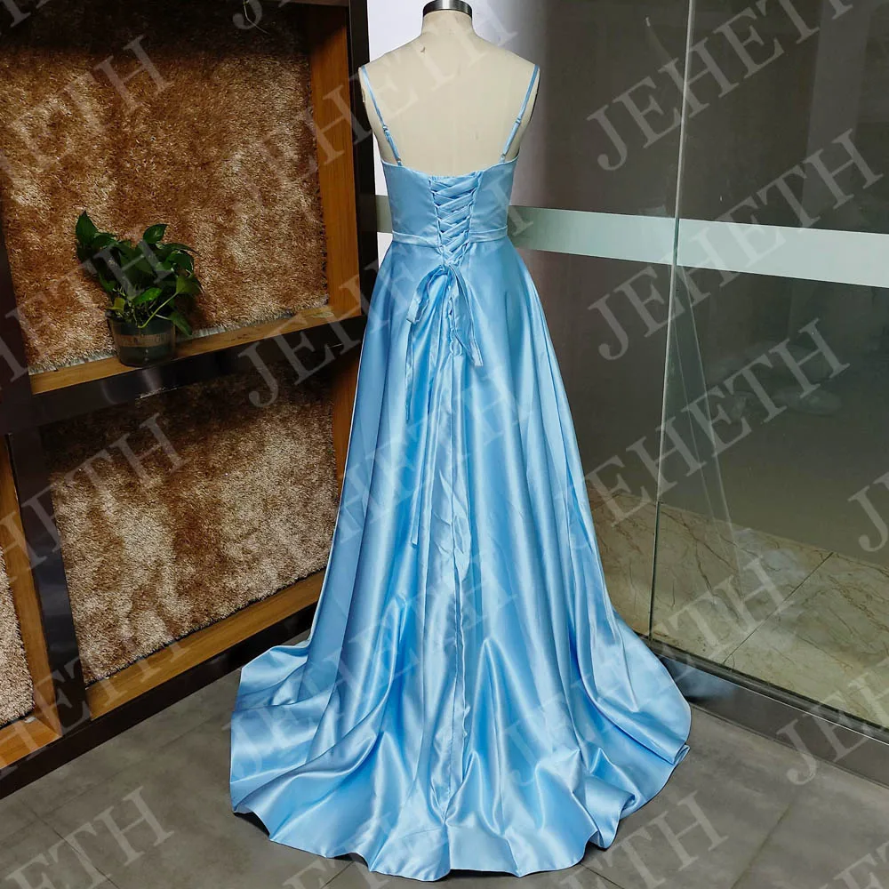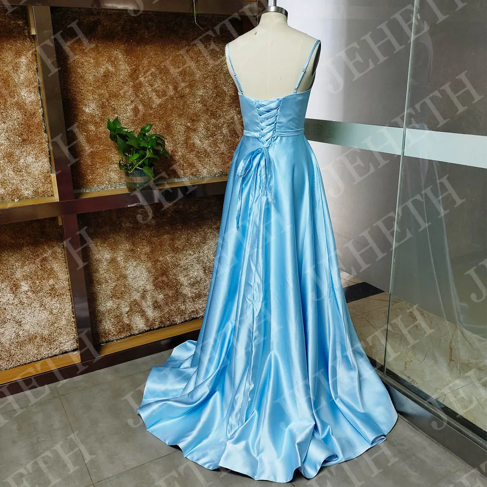 blue evening dress,satin party dresses,blue prom dress,sweetheart prom dress,satin prom dress,spaghetti straps prom dress,a line prom dress,long prom dress,satin evening dress,blue party dresses