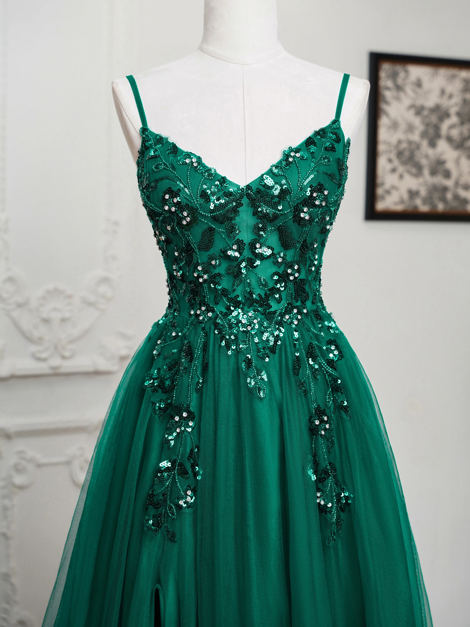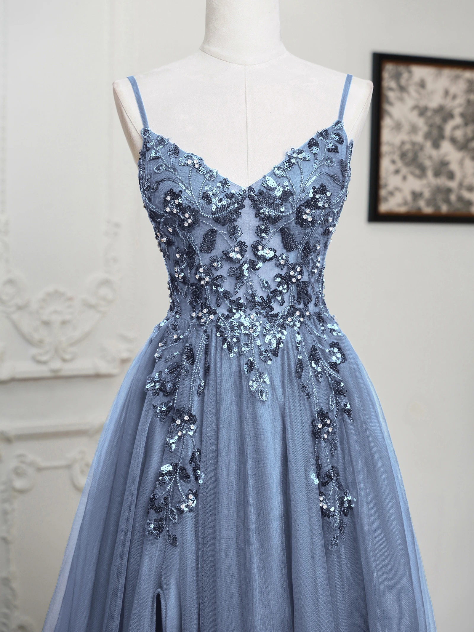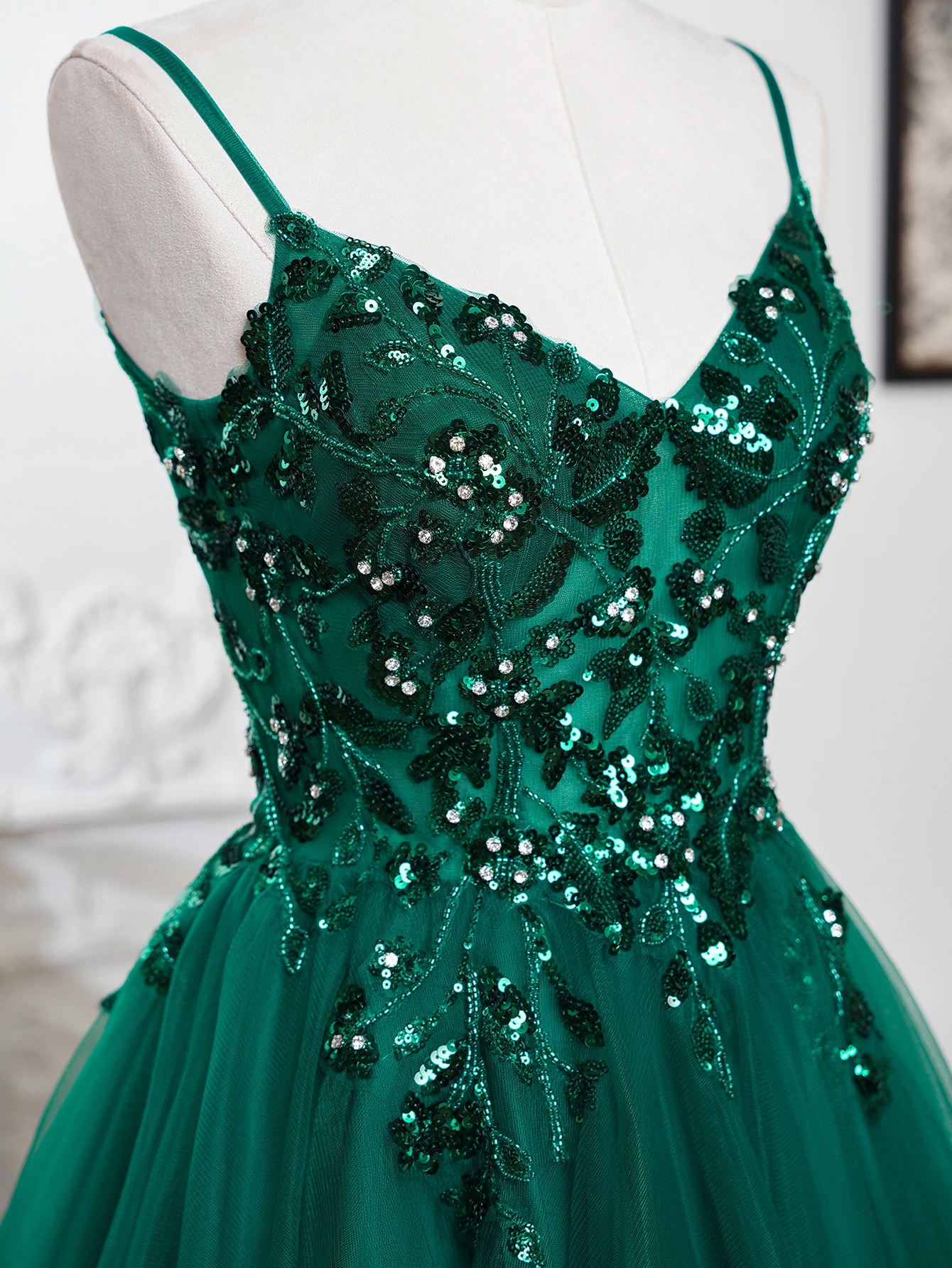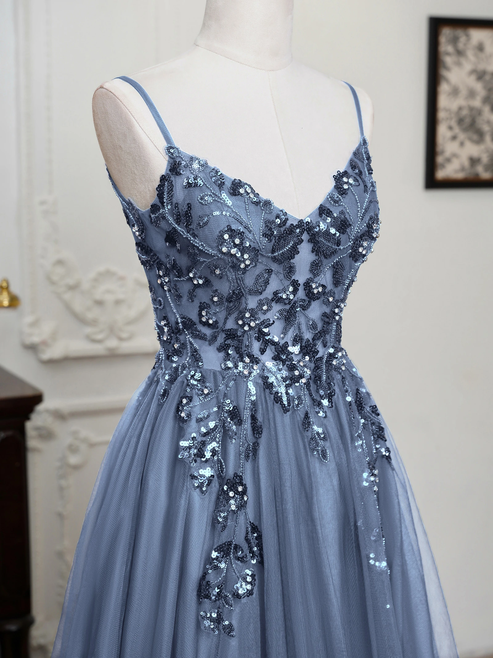 MisShow Sling Evening Dresses Sexy Spaghetti Straps V-Neck Illusion Sequins Appliques Prom Dress A-Line Train High Split Gowns Short Homecoming Dresses