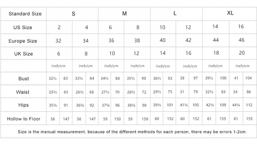 XL:Bust:100-104cm,Waist:83-86cm,Hip:109-112cm