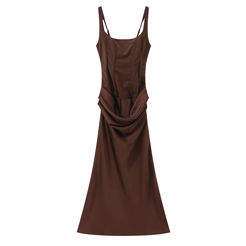 - Model Number: Solid Low V-neck Ruffle Sling Dress
