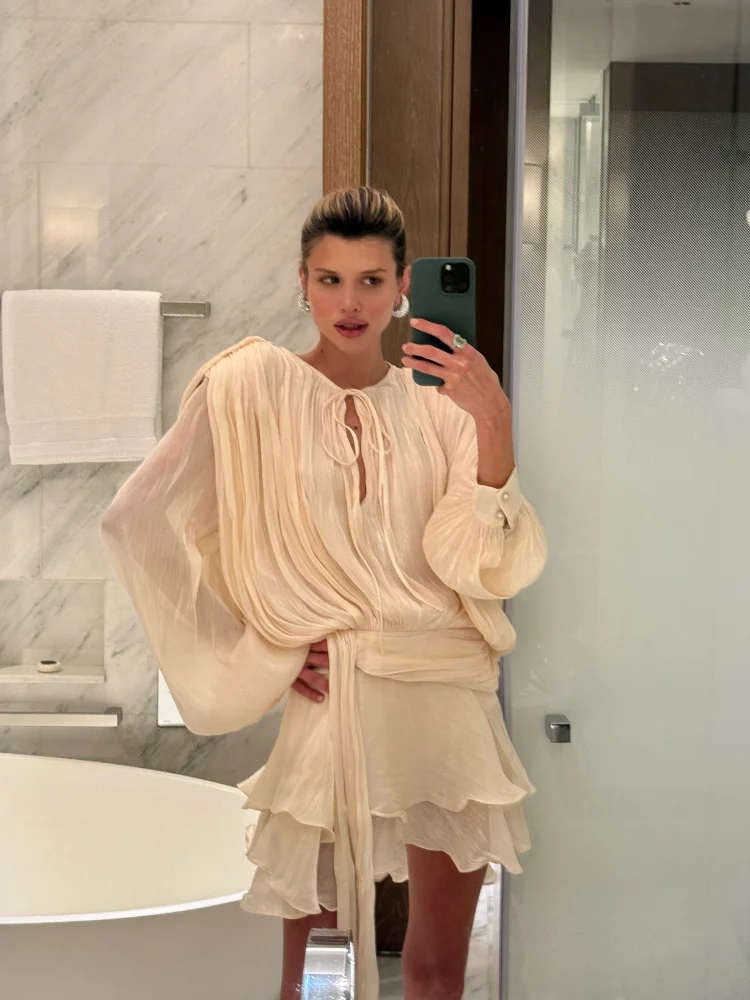 Wore it for my birthday dinner and felt amazing. The color is a beautiful neutral that feels special. The tiered skirt is so pretty.