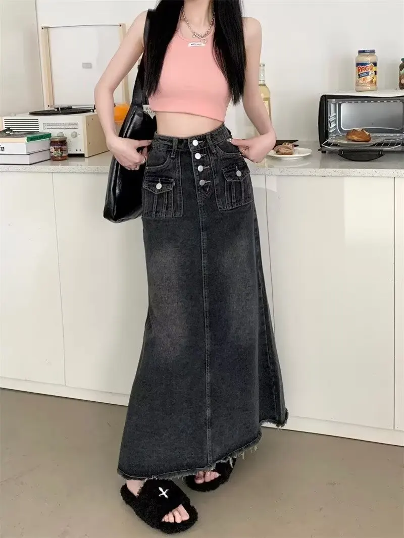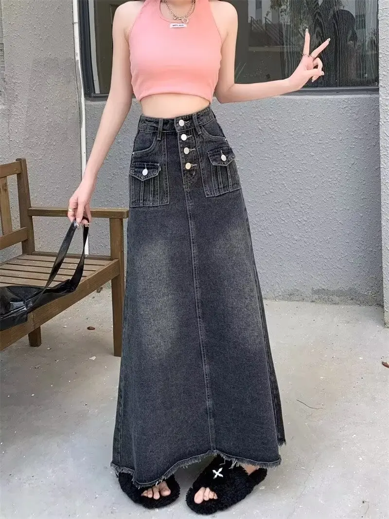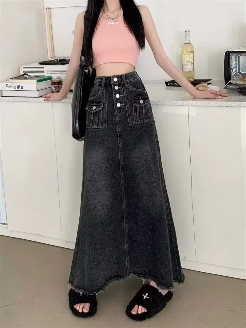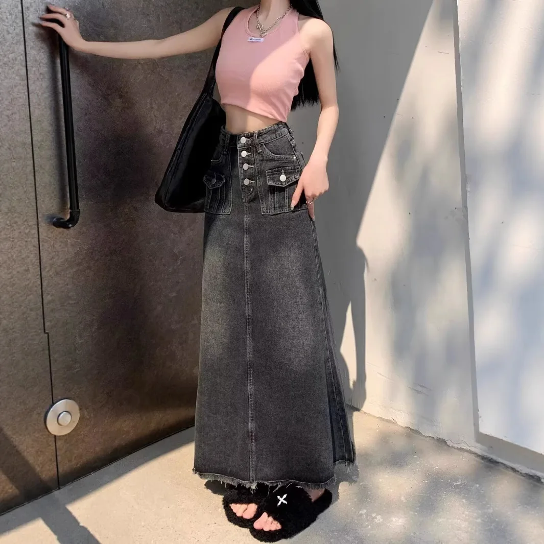 The high-waist design of this denim skirt accentuates your figure, providing a flattering silhouette for any body type.