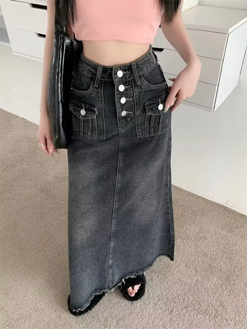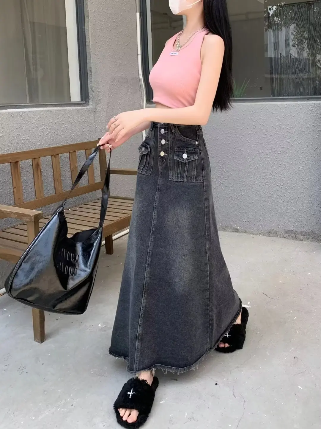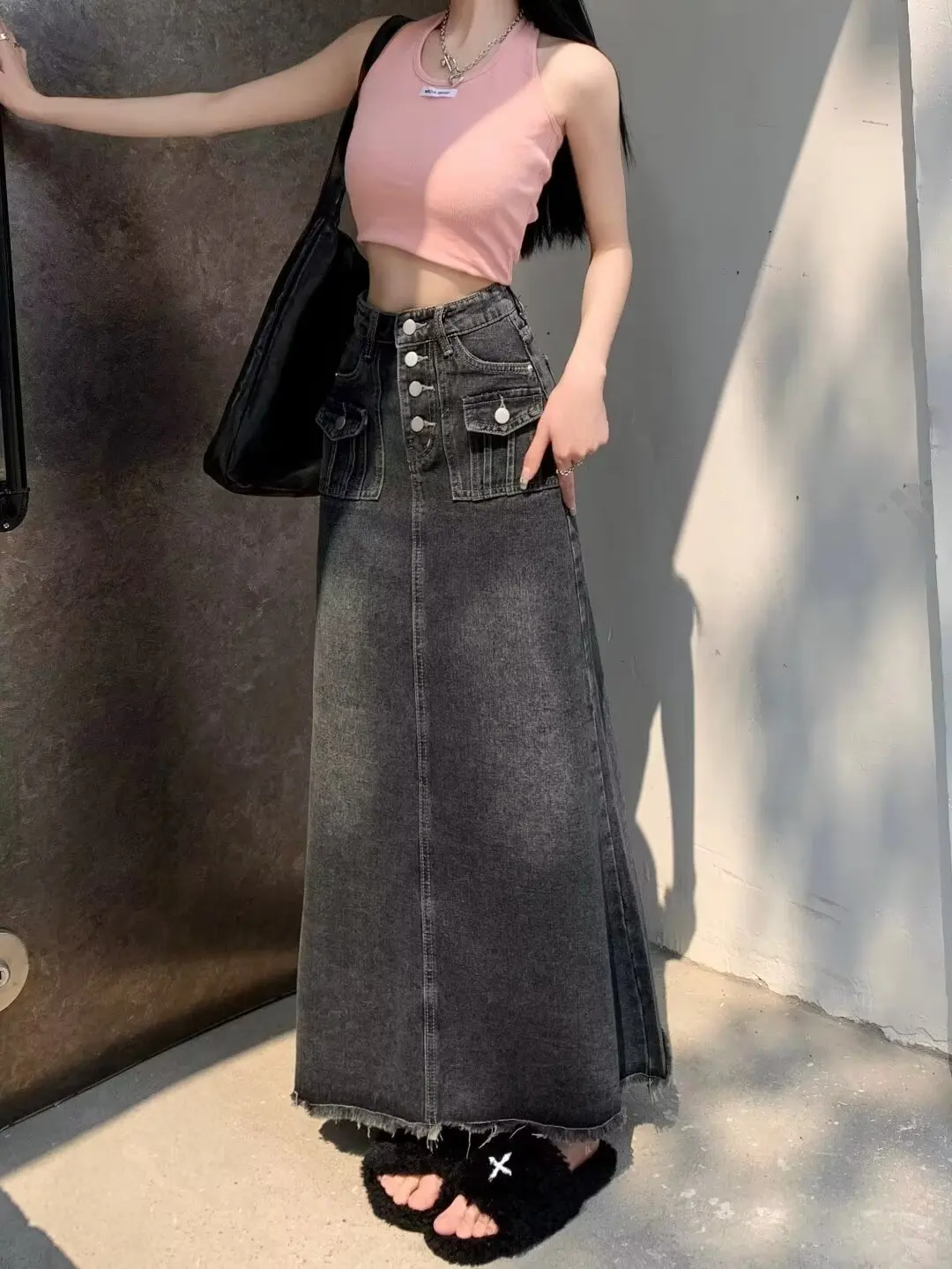 The high-waist design of this denim skirt accentuates your figure, providing a flattering silhouette for any body type.