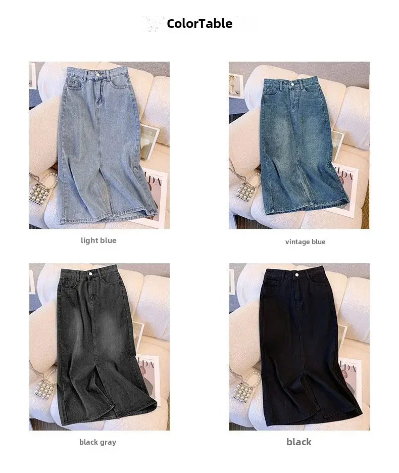 • Split Denim Material :Made from split denim, this skirt offers a unique blend of vintage charm and modern style, perfect for the fashion-forward woman.