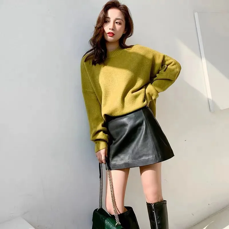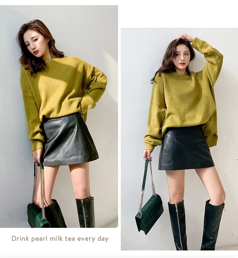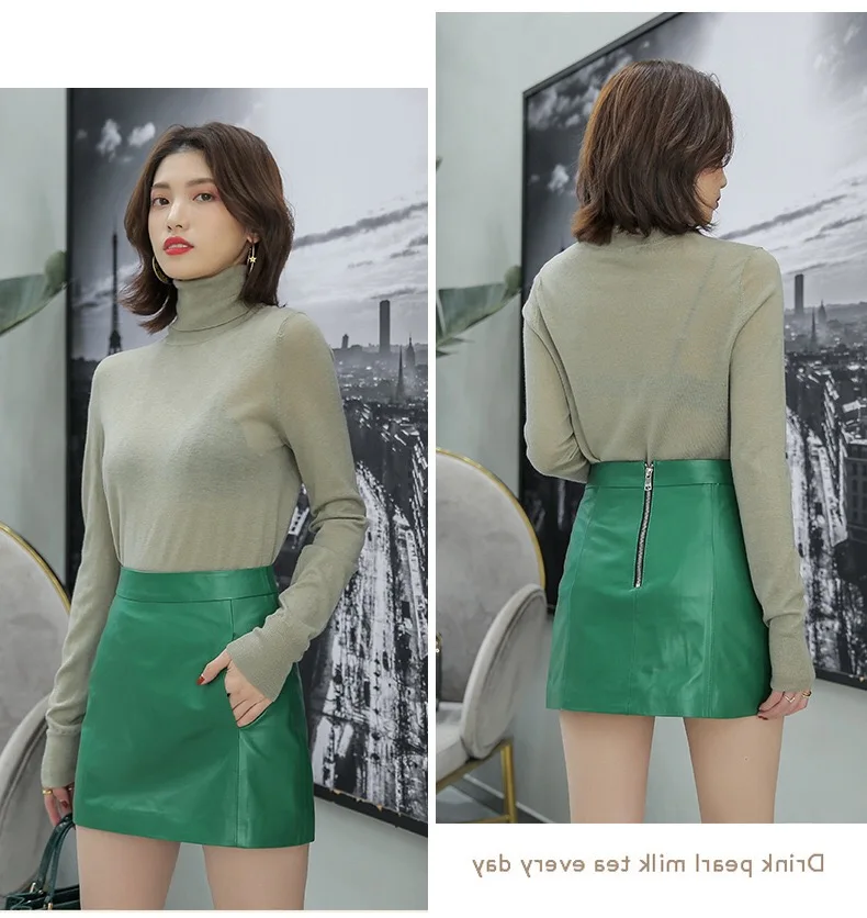 The length of the leather skirt is just right, it looks good when paired with sweaters, leather jackets, and shirts