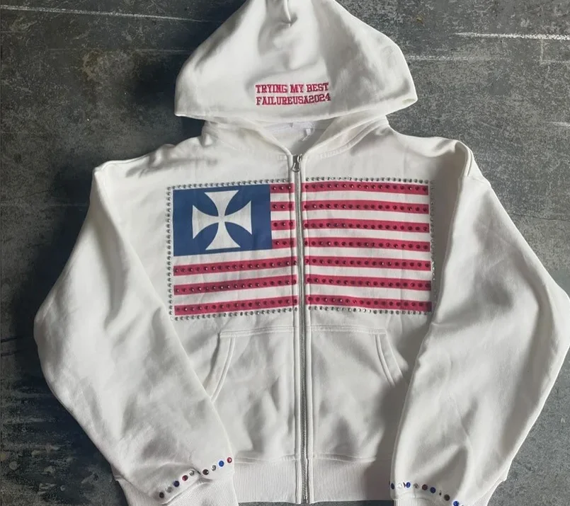 Autumn and winter new minimalist design color collision pattern women hooded sweatshirt Harajuku Y2k loose zipper sweatshirt