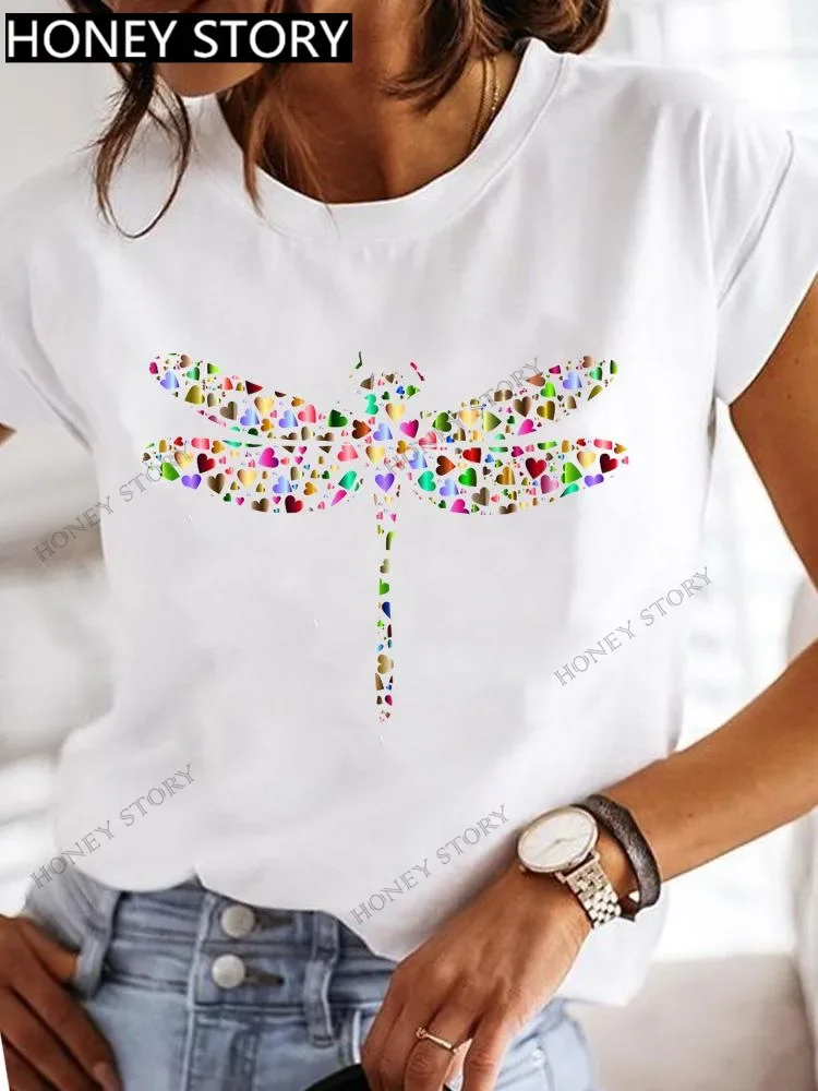 1 review for Explosive Dragonfly Butterfly Print Base Top Loose Women’s Short-sleeved T-shirt Round Neck Oversized T Shirt Women Clothes TEE