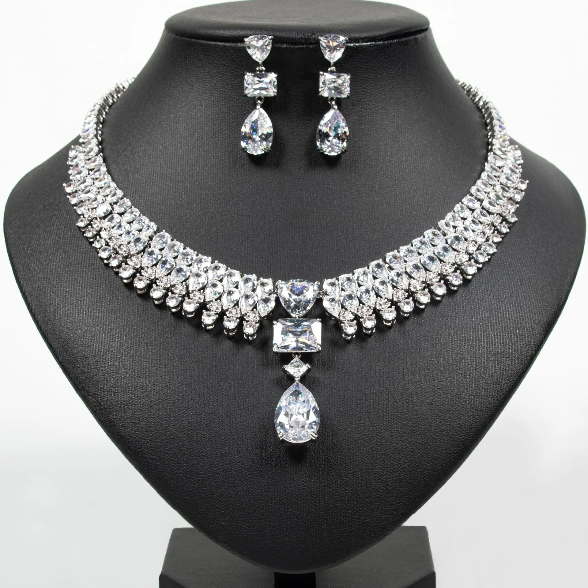 - Key Word: Luxury Multicolour Jewellery Teardrop Zirconia Women's Summer Necklace Earrings Accessory Set