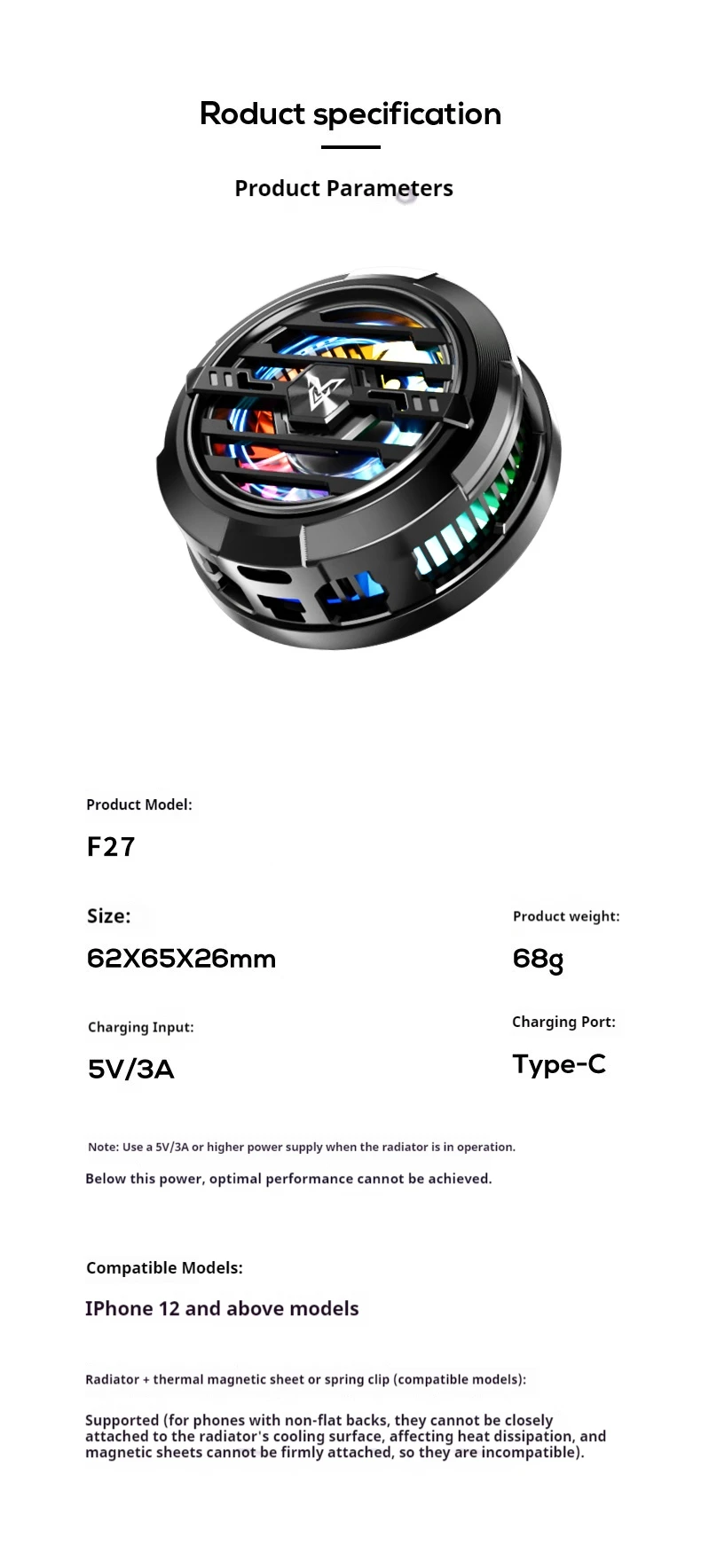 Portable Semiconductor Clip-on Phone Cooler for Live Streaming Gaming Cooling Device Heat Dissipation for Mobile Phones