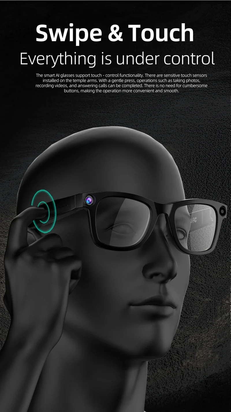 Effortless Interaction: Control your glasses intuitively with a simple swipe touch sensor on the right temple and two convenient physical buttons. Smart Wear Detection automatically pauses/resumes audio when you put on or take off the glasses.