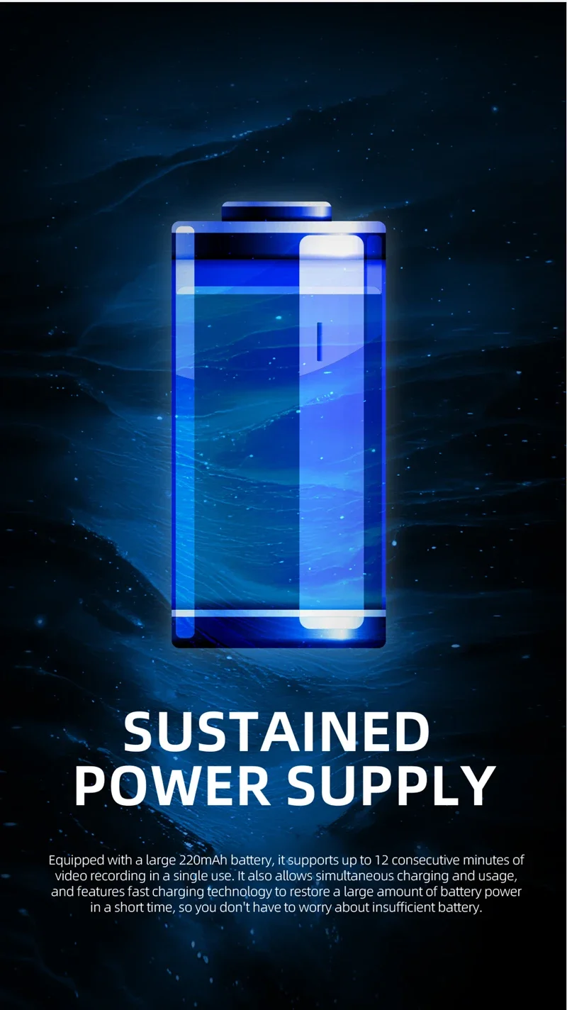 Exceptional Battery Life: Enjoy up to 12min of continuous video recording, 30 hours of non-stop music playback, or an impressive 120 hours (5 days) of daily standby time on a single charge. Supports charging while using, supports fast charging technology, can restore a large amount of power in a short time, so you don’t need to worry about low power. Smart charging path management ensures safety and battery health.