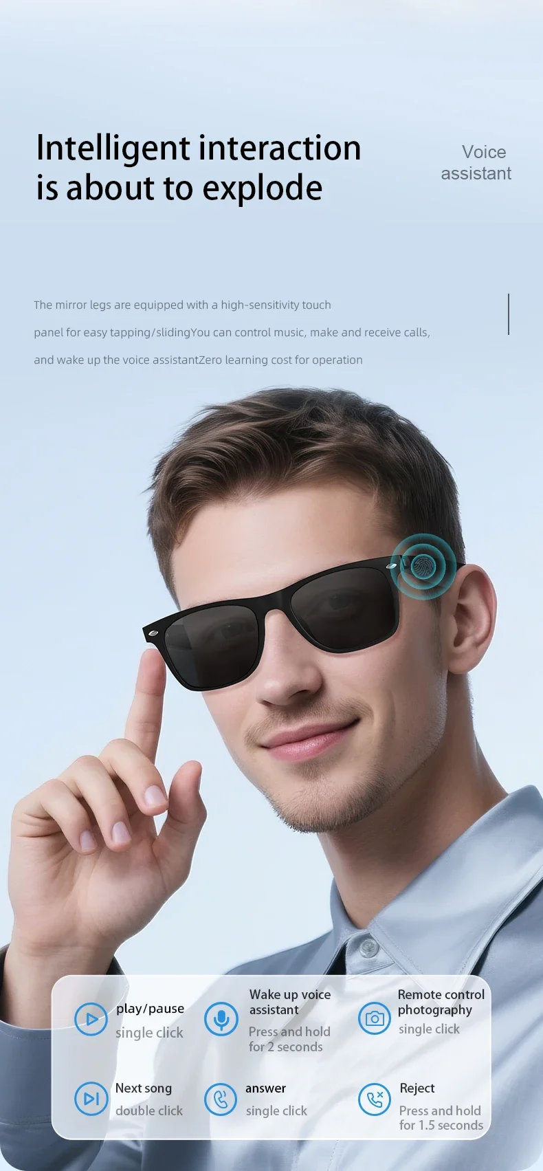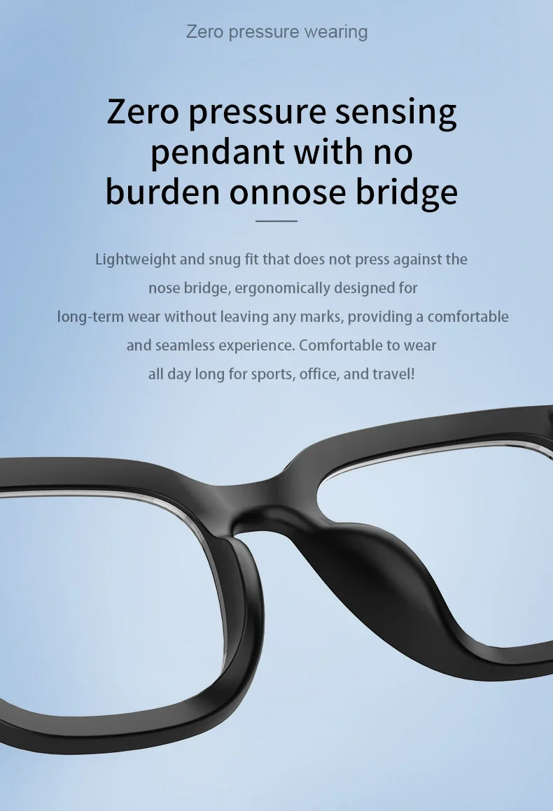 Lightweight at just 34g, with UV400 polarized lenses and anti-slip nose pads, combining sun protection with smart functionality.