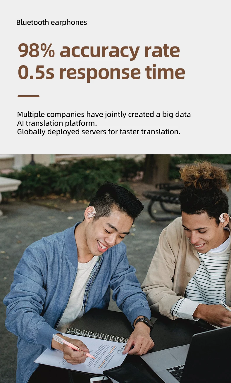 Hands-Free Mode: Two people each wear one earphone – tap to start real-time two-way translation, truly freeing your hands for unrestricted communication.