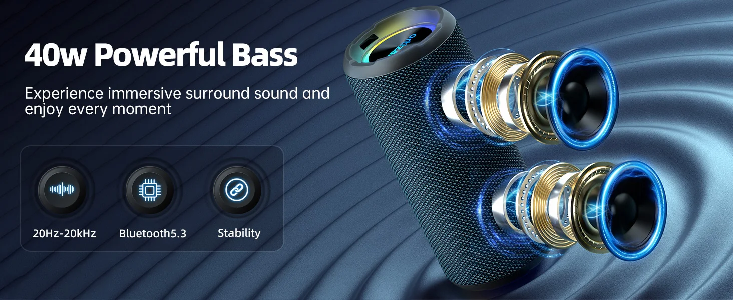 1. 40W Superior Sounds with Deep Bass