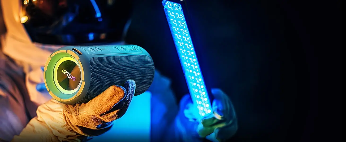 Ortizan Bluetooth Speakers, Portable Wireless Stereo Speaker – IPX7 Waterproof, Loud Sound, Deep Bass, LED Light, Bluetooth 5.3, for Home/Shower/Outdoor/Beach, Gifts for Adult