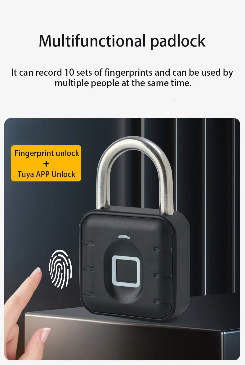Thanks for choosing the intelligencefingerprint hanging lock. For a better experience of using, please read the usermanual carefully before using the device. Takedown the plastic film on the back of the lock to power-on the system.