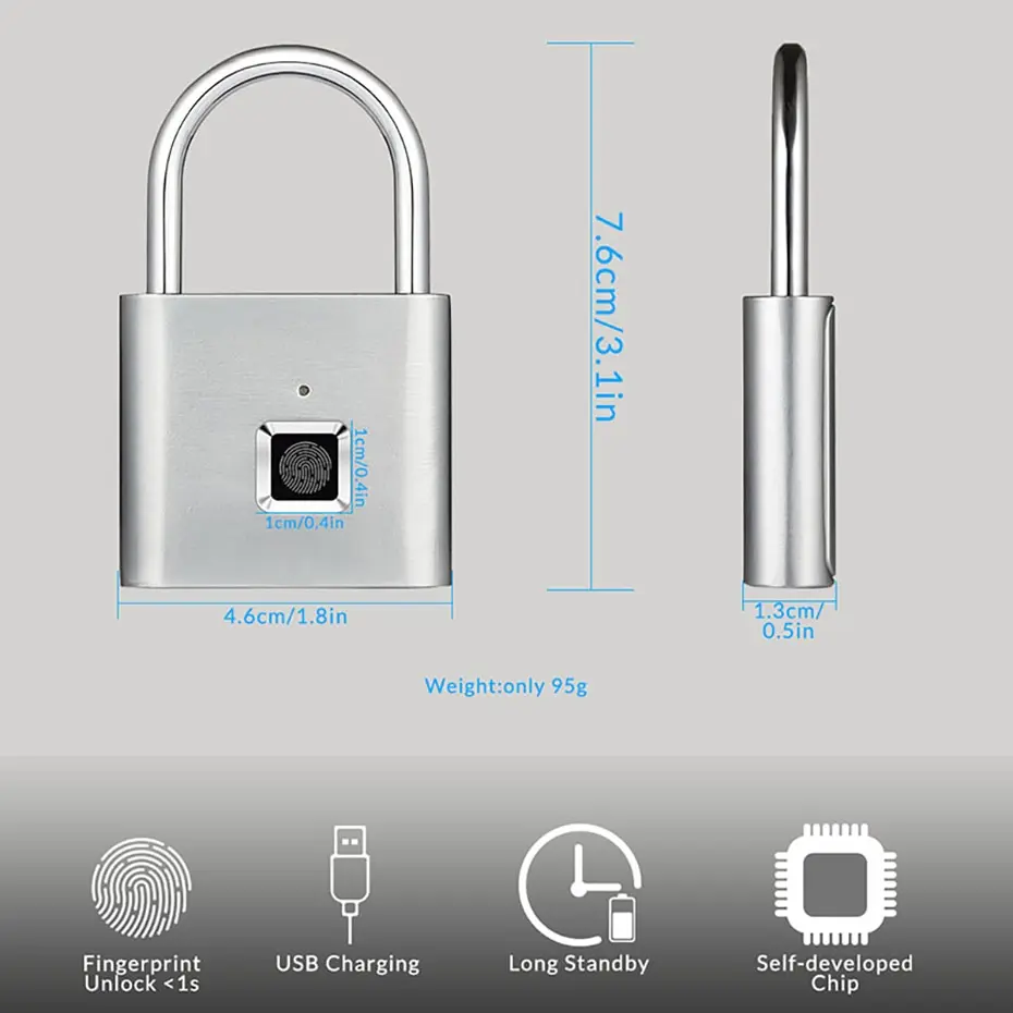Electronic smart fingerprint padlock will max last half a year after fulling charge