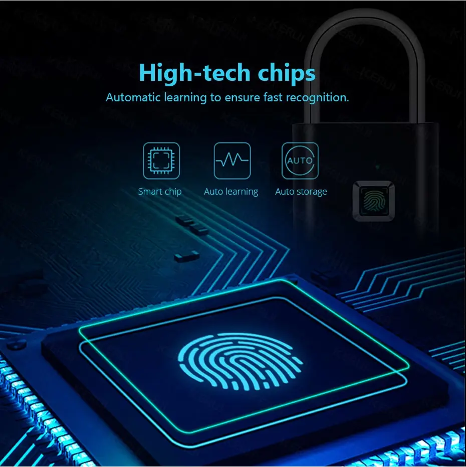 KERUI Fingerprint Padlock, Gym Lock for Locker, Sports, School & Employee Locker, Outdoor, Fence, Hasp and Storage – All Weather Metal and Steel (NO app, NO key, NO Bluetooth, NO password)