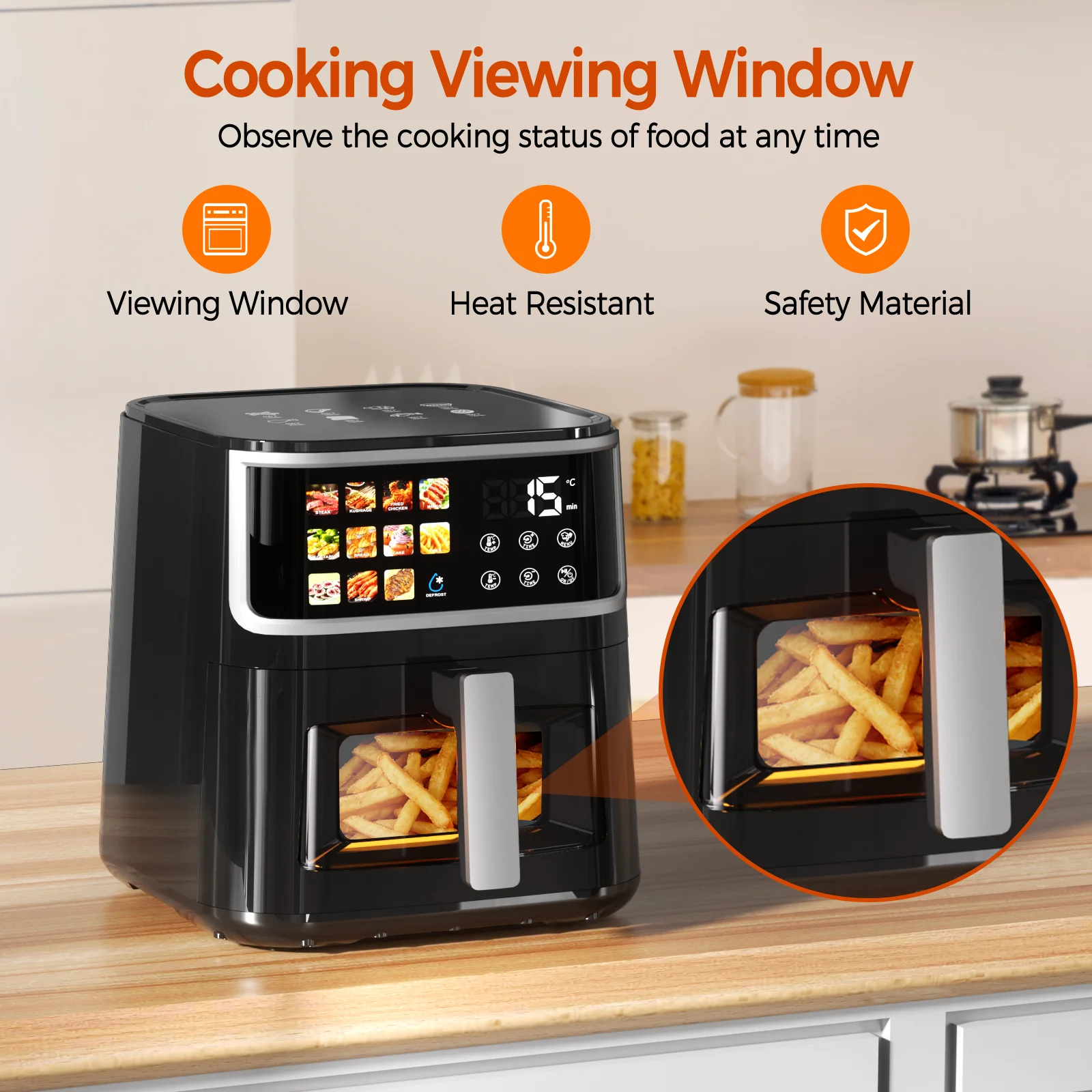 Patbrela Visible Air Fryer 8L Large Air Fryer with Led Screen 11 Preset Functions Roast Bake Dehydrate Reheat Quiet Non-Stick