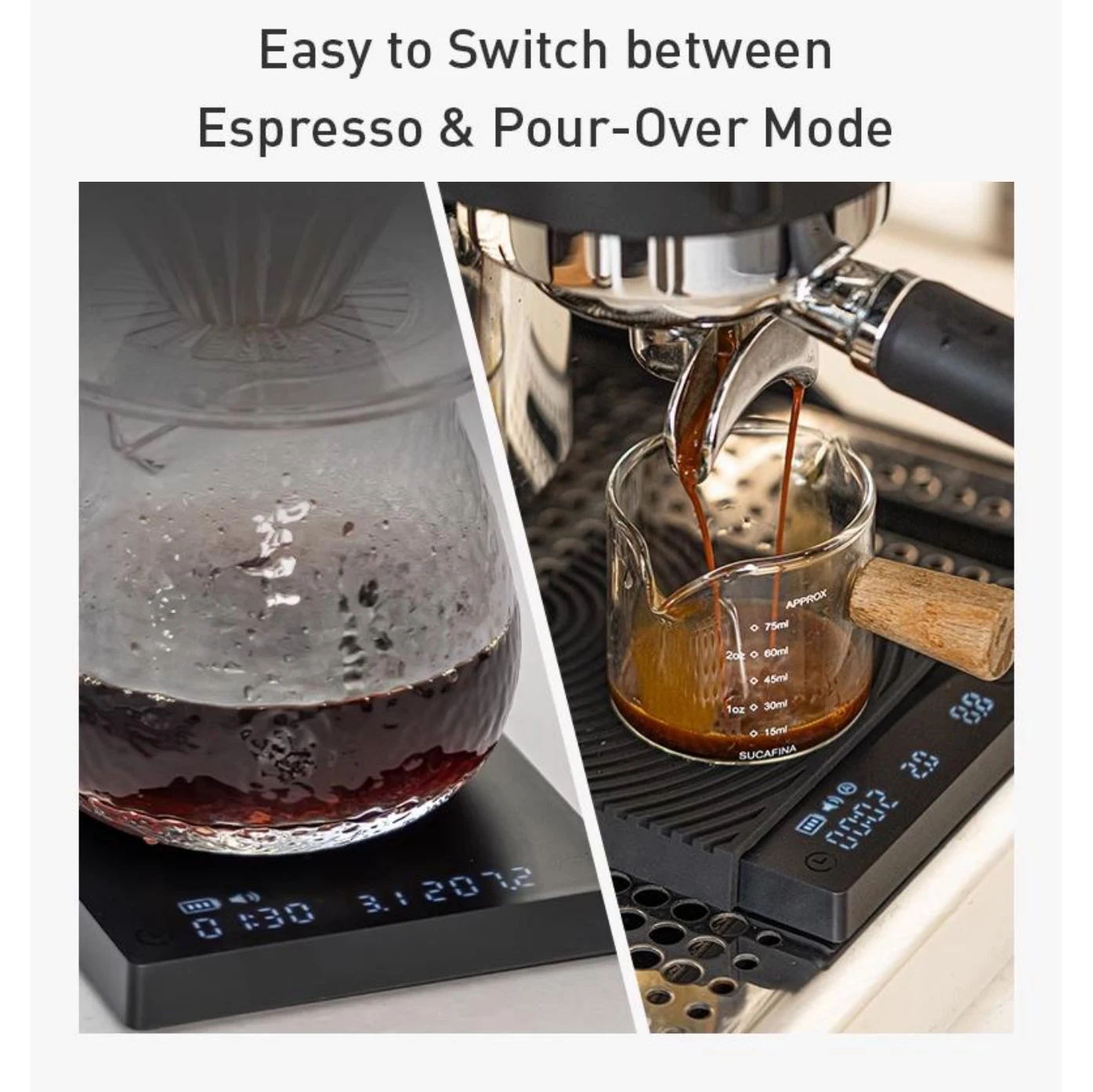 Scale works great very small in size which allow it to fit onto drip tray properly.