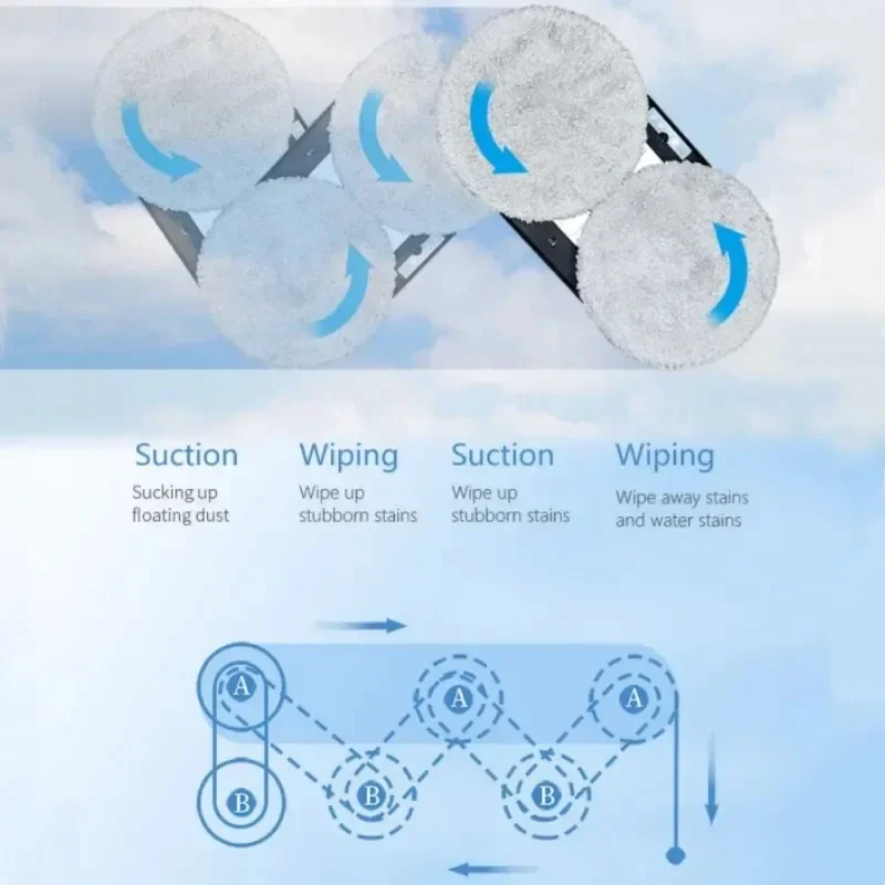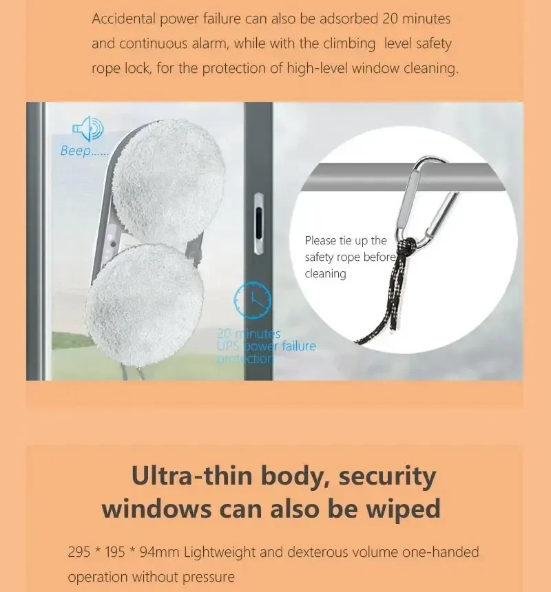 Using way:1. Wait 20 seconds after starting up until the blue light stop flashing,Then start working. Because the robot need 20sec to detect the glass plane.2. Binding the safety rope when using, Prevent falling from high altitude.3. Spray some water on the edge of the Mop when working, will be better effect.4. When you receive the item, please contact us if you have any questions, we will solve it for you.(When you don't know how to use it, I will give you answer and send you an operation video)If you want the fast shipping. Pls choose the Poland warehou.