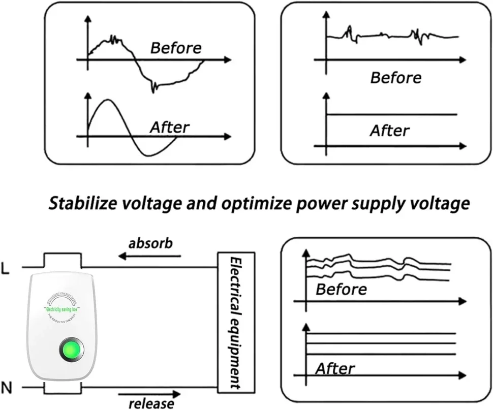 Our Electricity Saving Box is an exceptional device that enhances power efficiency, reduces consumption, and extends the lifespan of your appliances. With the Pro Power Saver, you can be confident that your voltage is stabilized, your current is balanced, and you're protected from over voltage. It's an informative, friendly, and favorable product you'll be enthusiastic about using.