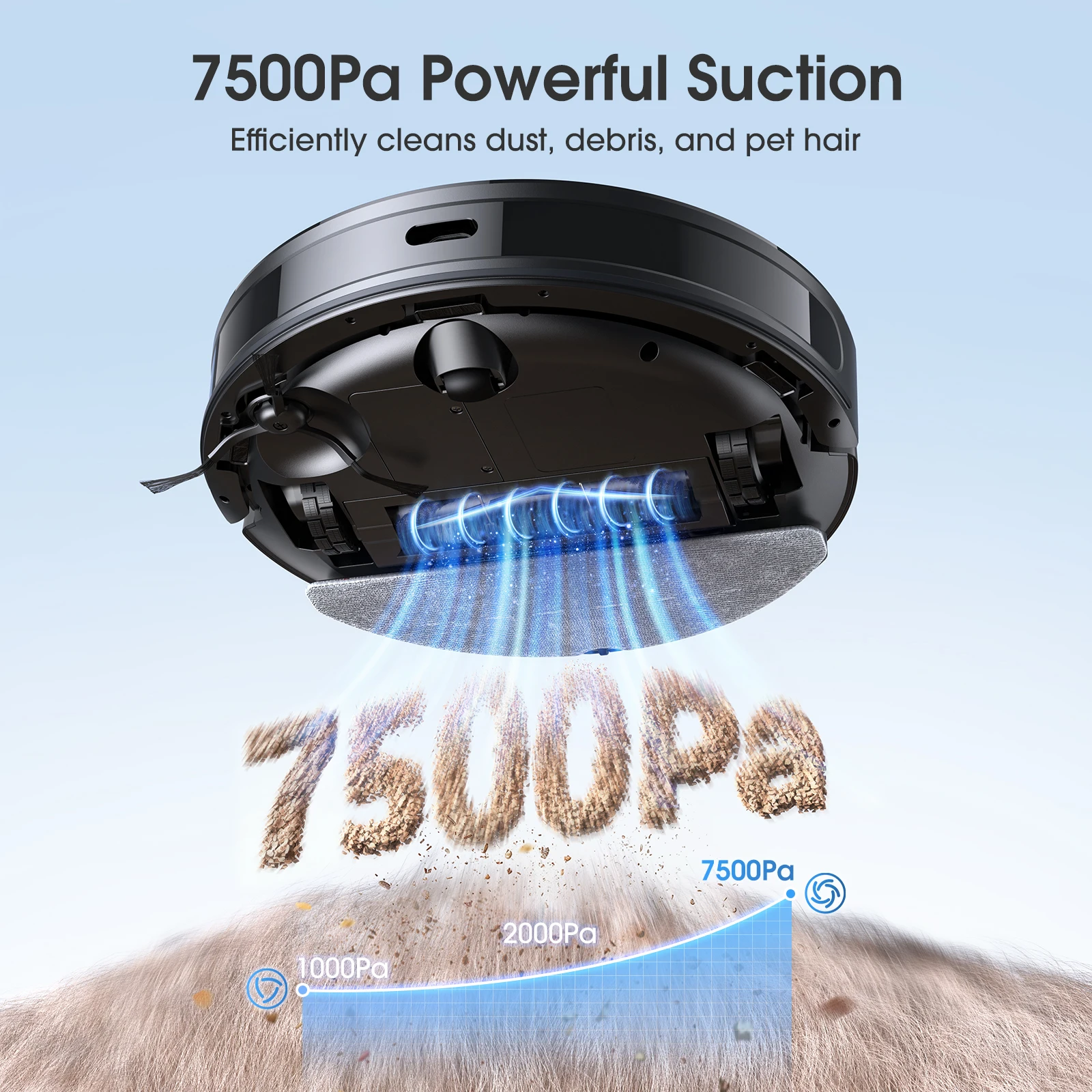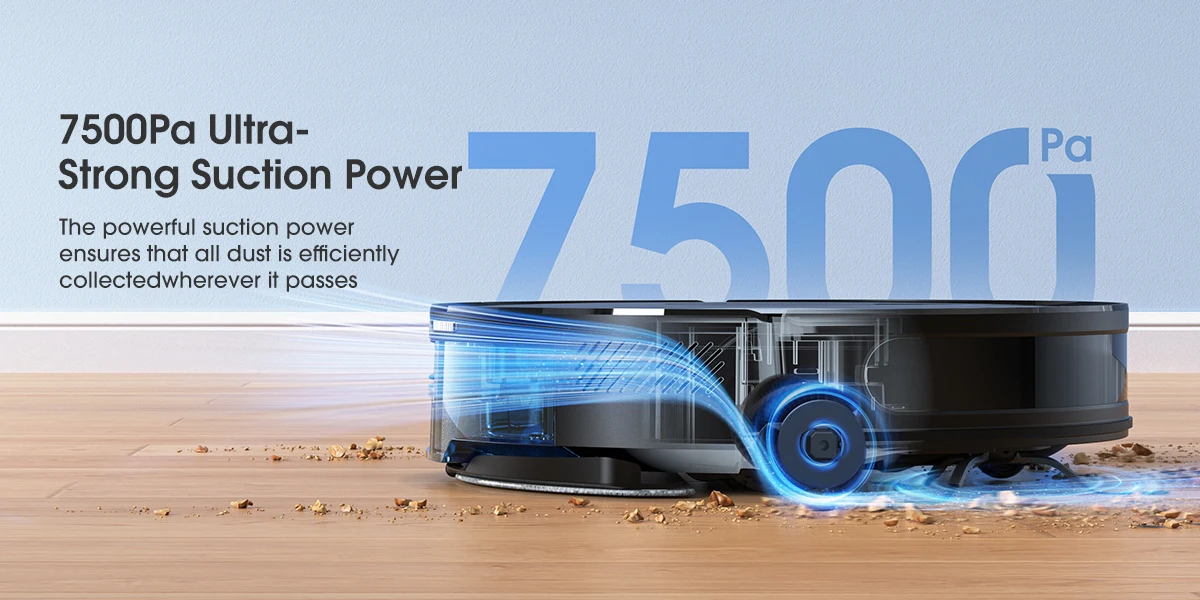 • 7500Pa Strong Suction: Deep cleans carpets/floors.