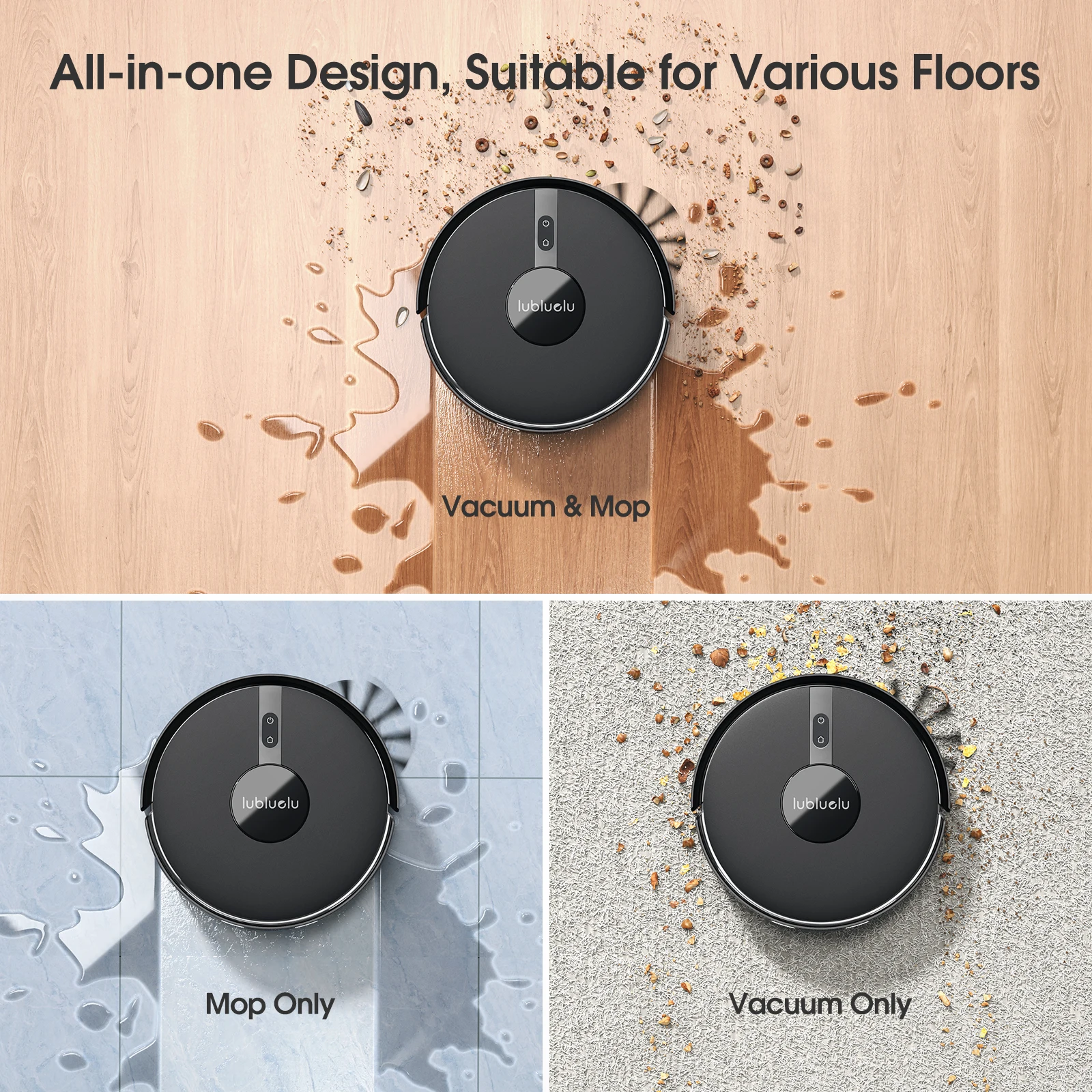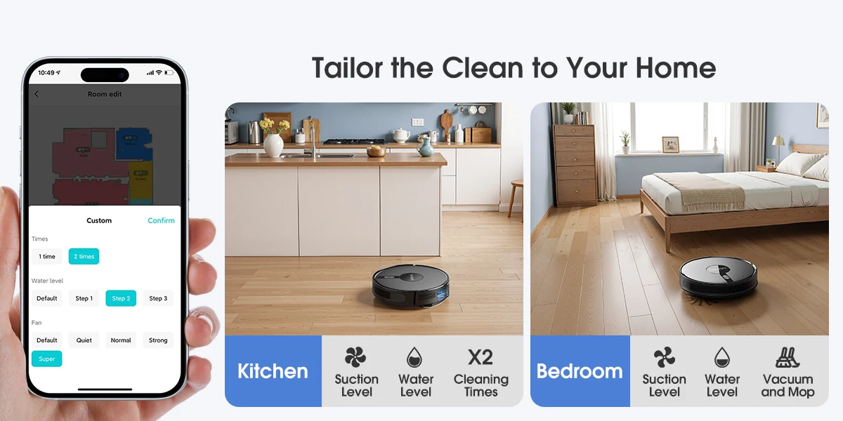 • 2-in-1 Water Tank: Supports both sweeping and mopping modes.