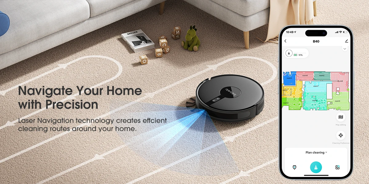 • Resume Cleaning: Auto-recharges to 80% finishes interrupted jobs.