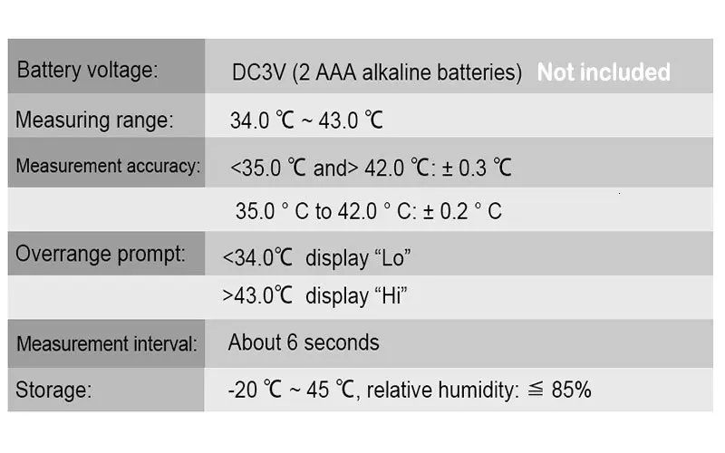 Measuring range: 34.0 ℃ ~ 43.0 ℃