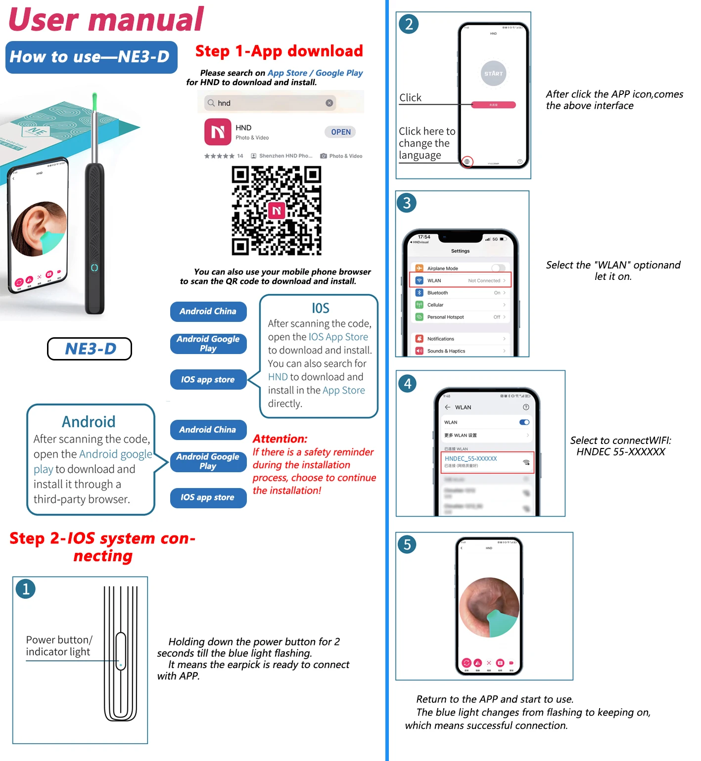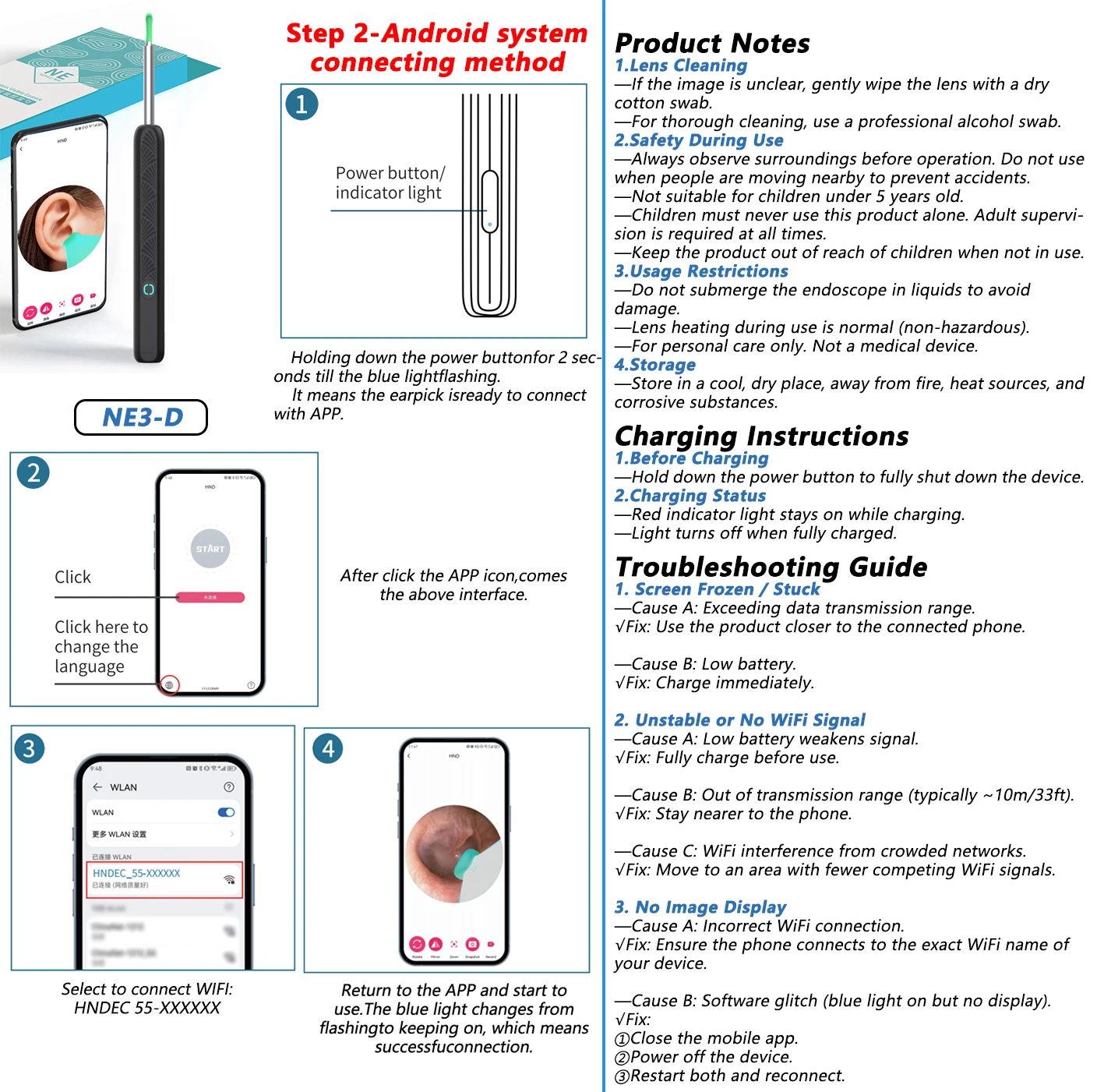 - Type 23: USB C Charging WIFI Ear Endoscope