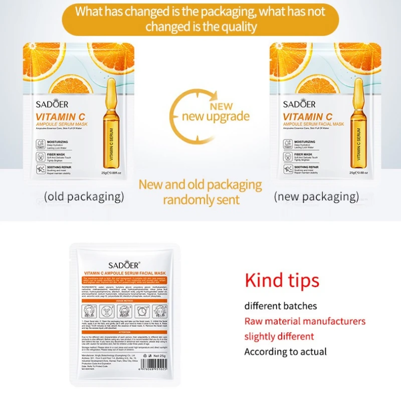 5Pcs Essence Mask SADOER Hyaluronic Acid Hydrating Vitamin C Moisturizing Gold Acid Face Care Mask Facial Firming