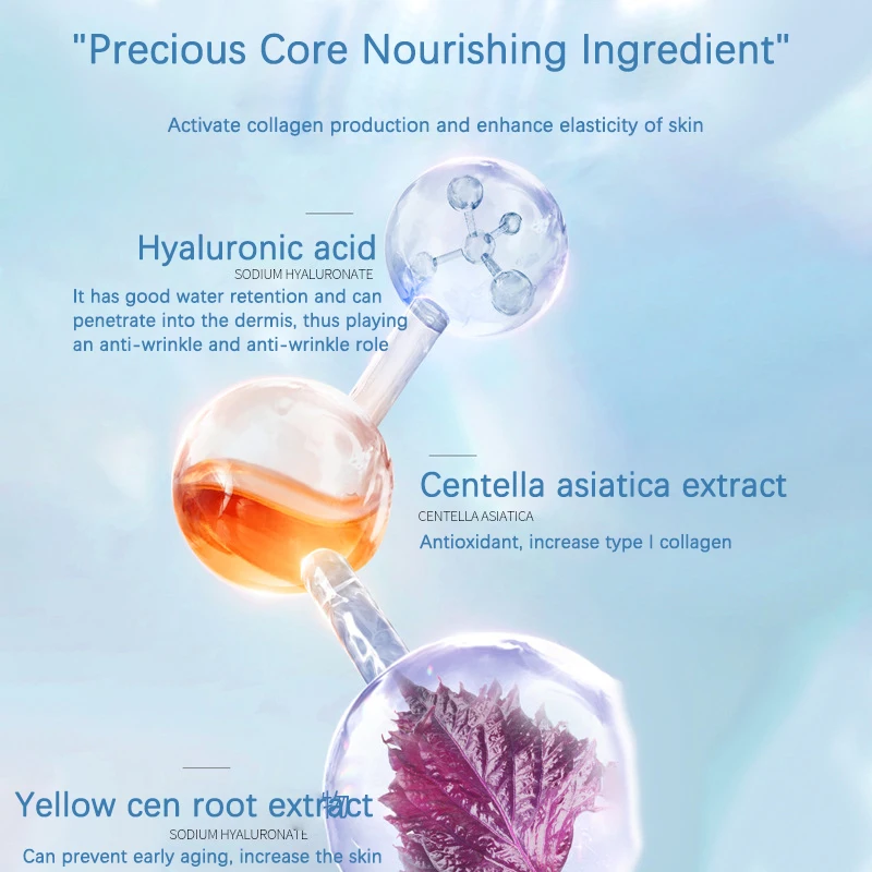 Note: After cleansing and toning, blend the freeze-dried powder and solvent at a ratio of 0.16G∶5M, evenly apply on facial skin, gently massage until absorbed