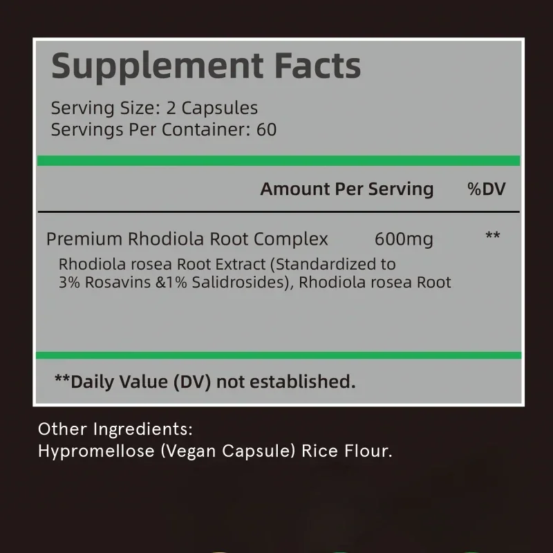Vegan & Non-GMO – Rhodiola is vegan, non-GMO, gluten-free, and contains no artificial ingredients.