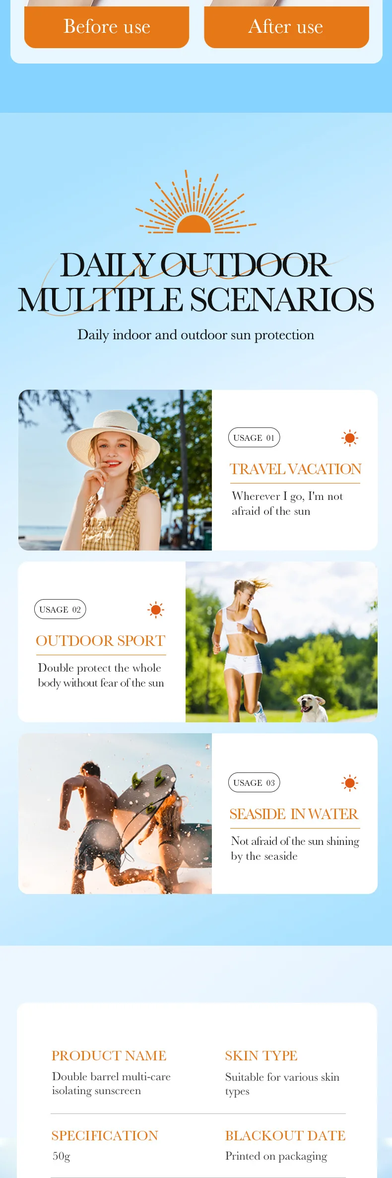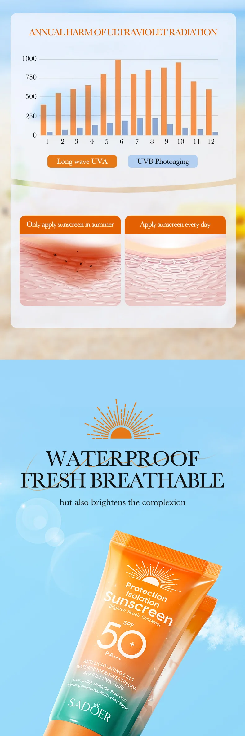 SADOER Spf 50+ Sunscreen for Face Protector Solar skincare Dual Tube Multi Effect PA+++ Facial Sunscreen Solar Blocker