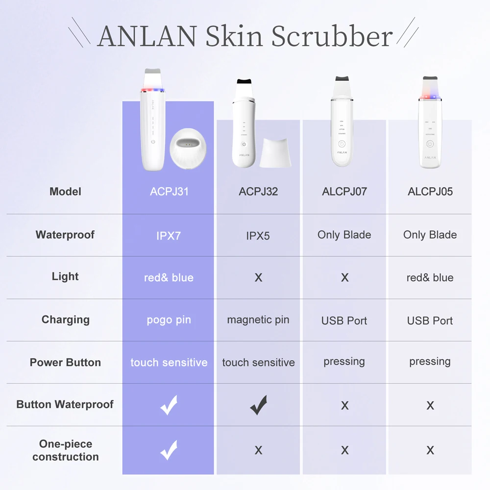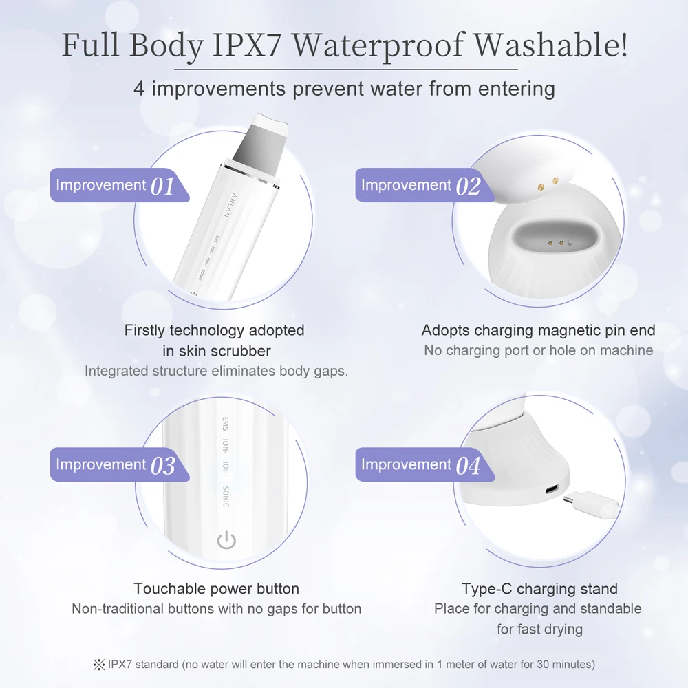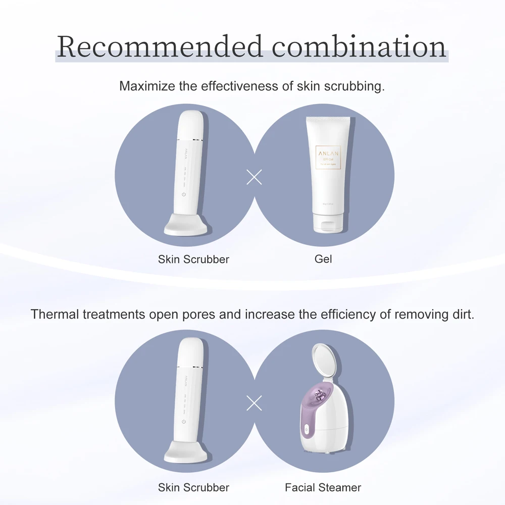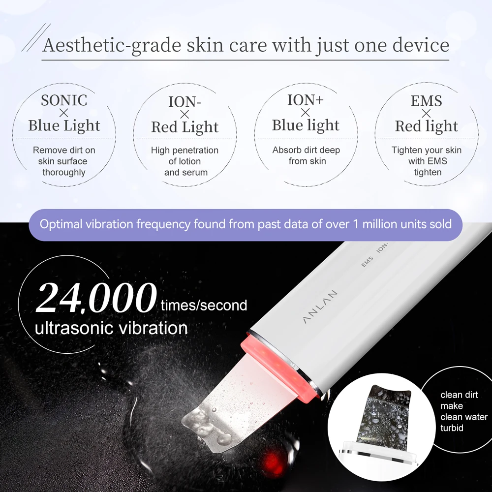 Using ultrasonic vibrations for deep cleansing, the skin scraper gently cleanses blackheads and acne on the face and exfoliates.