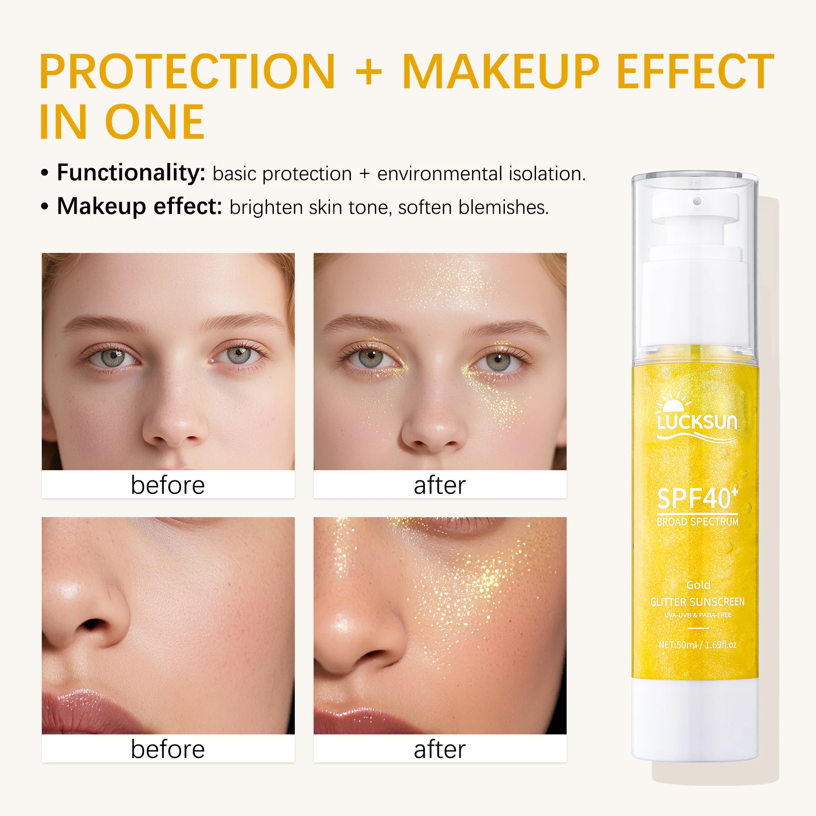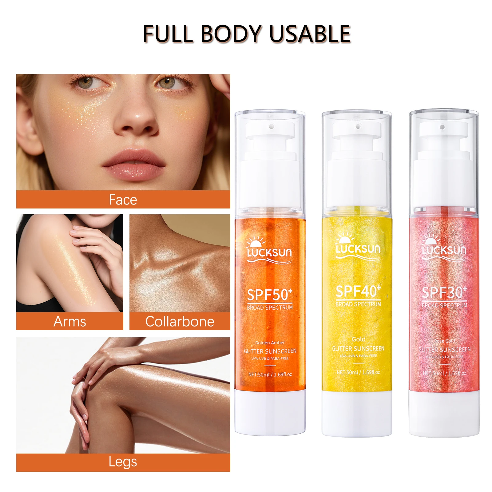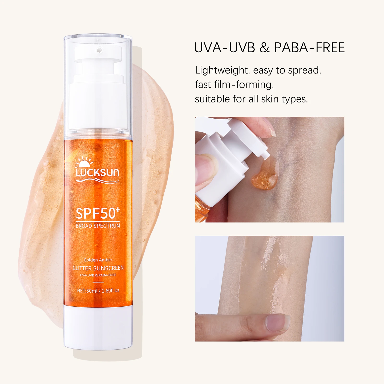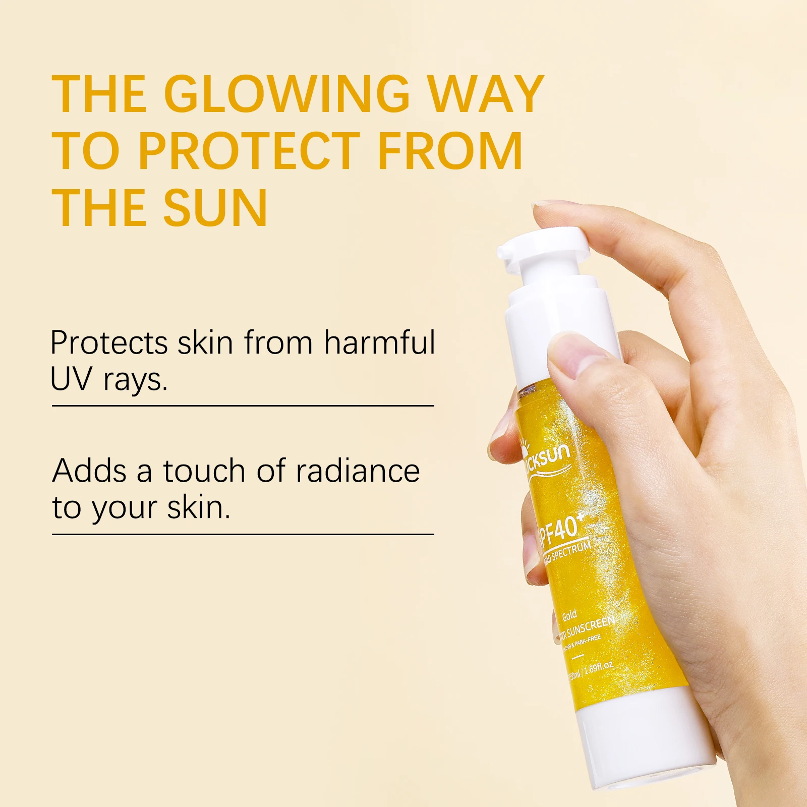SPF50+ Glitter Sunscreen 50ml UVA/UVB Protection + Skin Brightening Shimmer Makeup Effect for All Skin Types Body Glow Gel